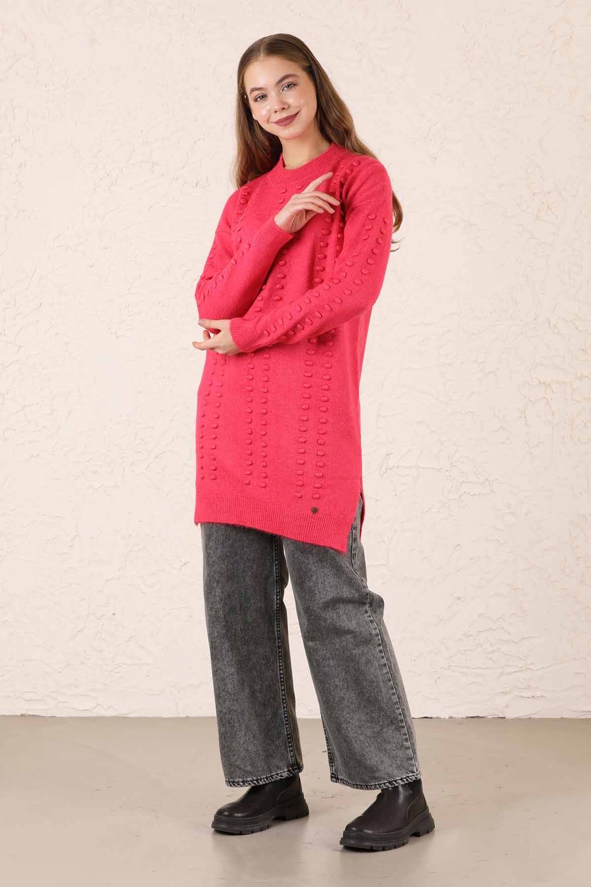 Patterned Jumper Pink. Knitted knitwear. It is soft textured and does not sting. Bicycle collar. comfortable fit