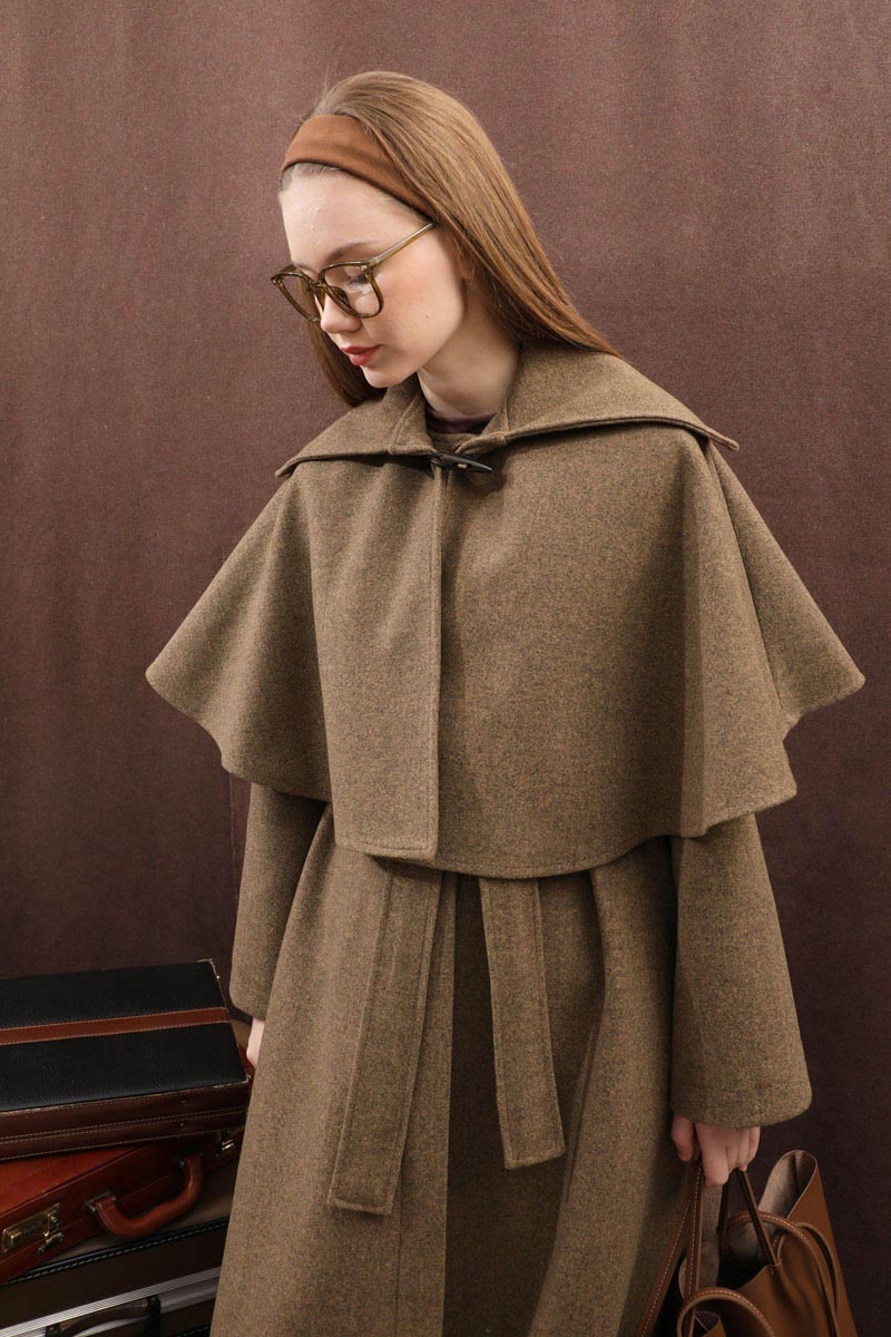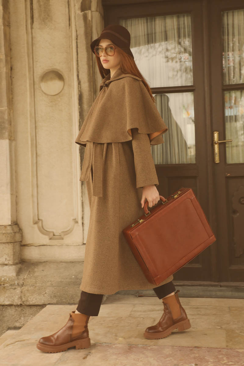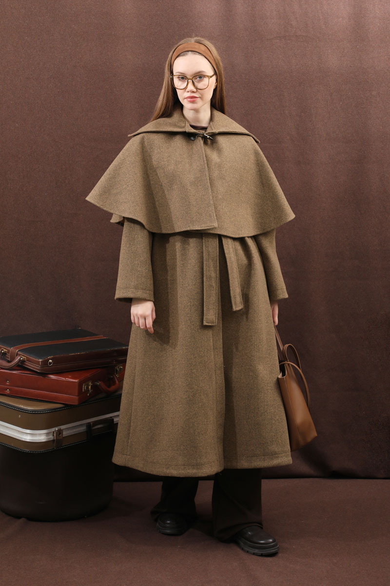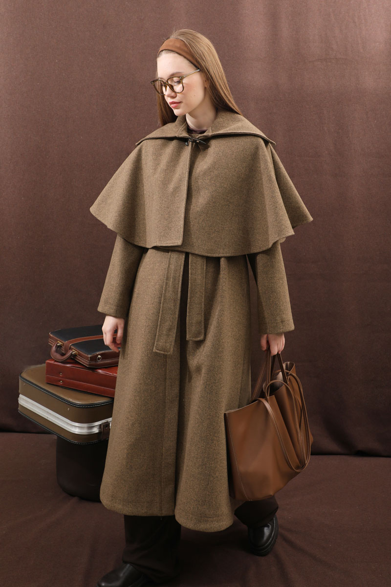 Pelerinli Kaban Taba. Bisiklet yakalıdır, gizli düğmelidir, yandan gizli ceplidir, Kloş kesimdir, Astarlıdır, kuşaklıdır, Pelerin: Geniş yakalıdır önden çoban düğmelidir. Günlük kullanım ve özel günlerinizde tercih edebilirsiniz.