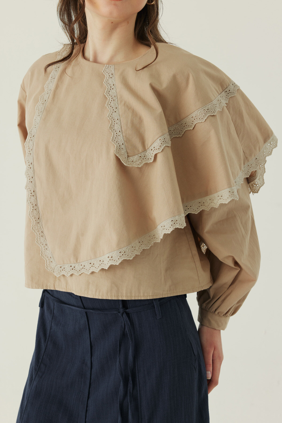 Pelerinli Poplin Gömlek Bej