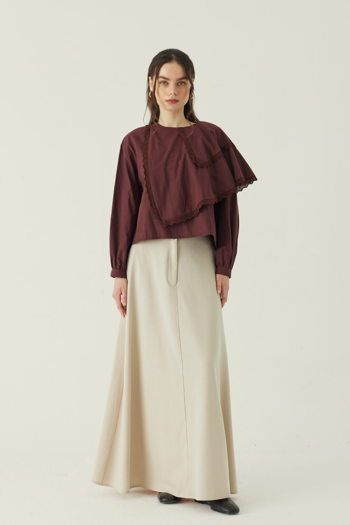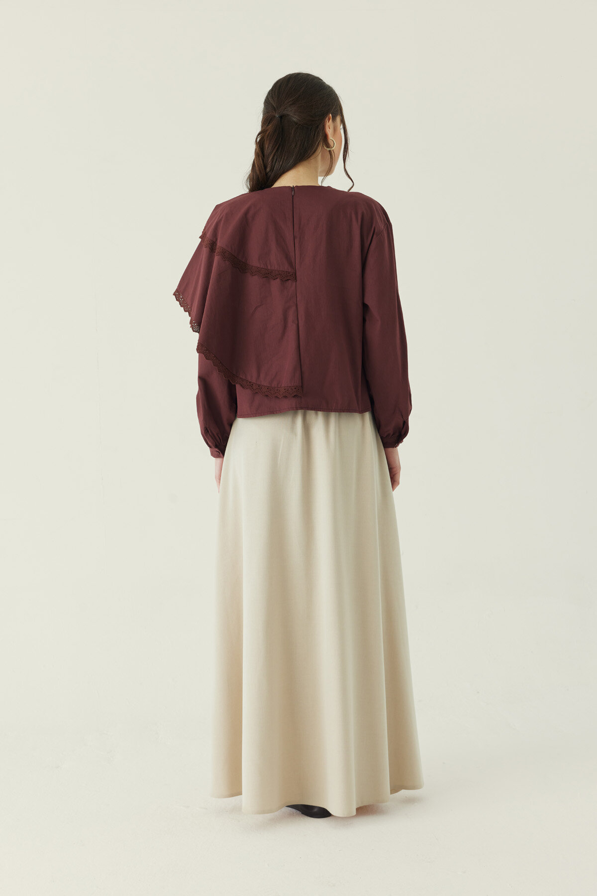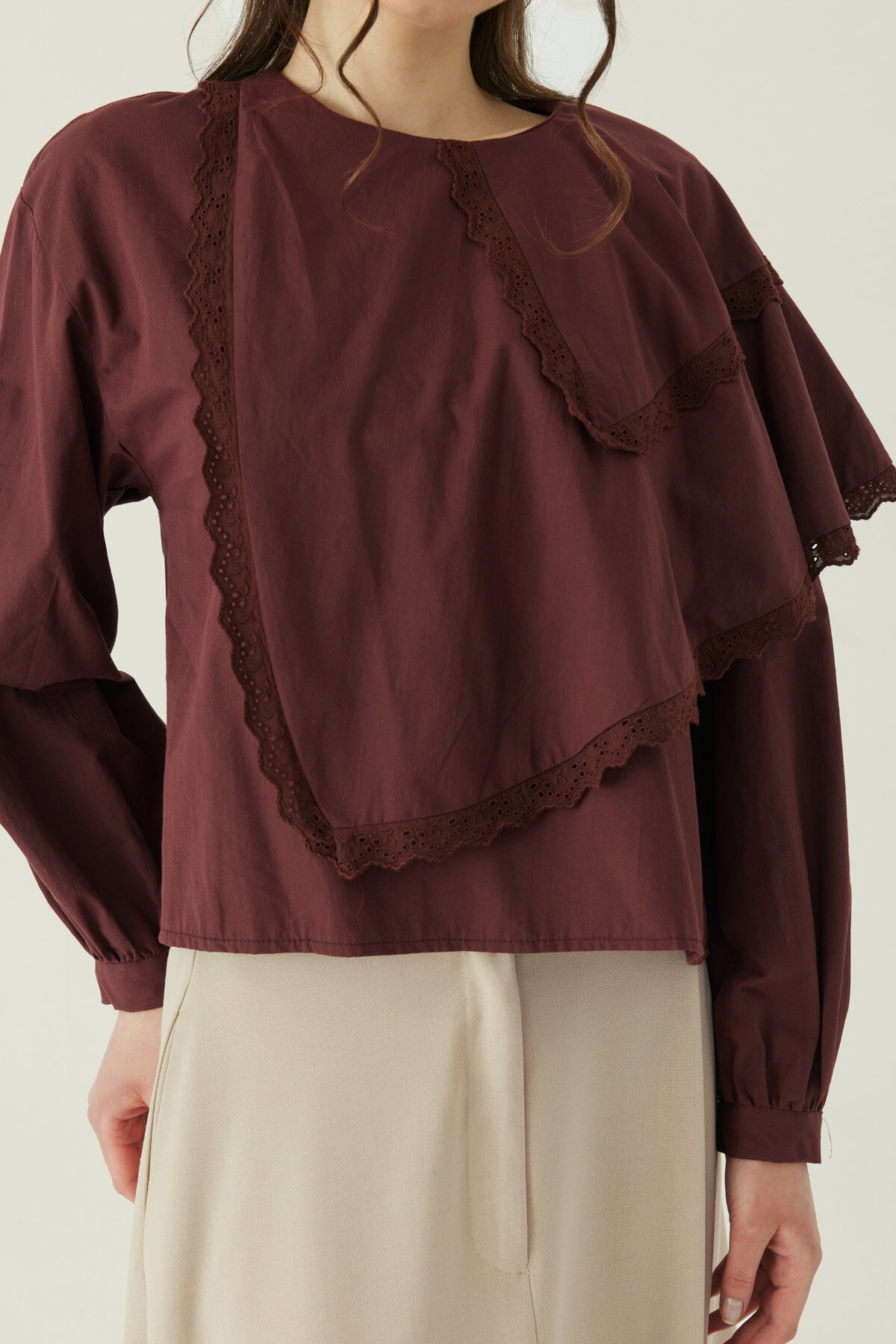 Pelerinli Poplin Gömlek Bordo