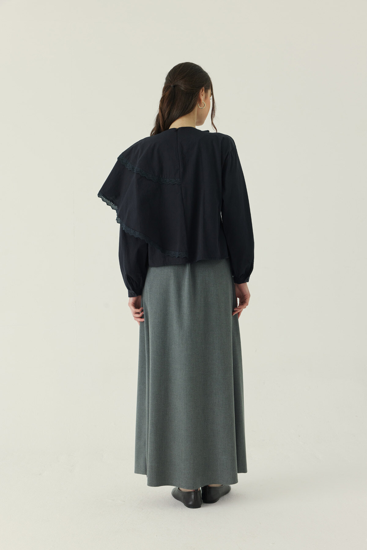 Asimetrik dantelli ön detayıyla tasarımına zarif bir karakter kazandıran Pelerinli Poplin Gömlek, rahat dökümlü kalıbıyla konforlu ve dengeli bir siluet sunar. Bisiklet yaka formu sade bir çerçeve oluştururken, pelerin etkisi veren üst yapı modele modern bir hareket katar. Günlük kombinlerden daha şık görünümlere kadar geniş bir kullanım alanına sahiptir.