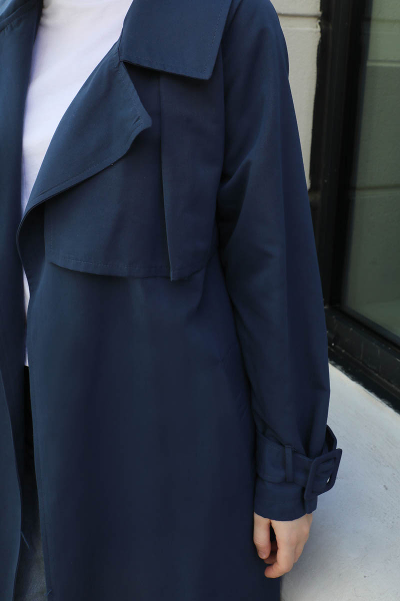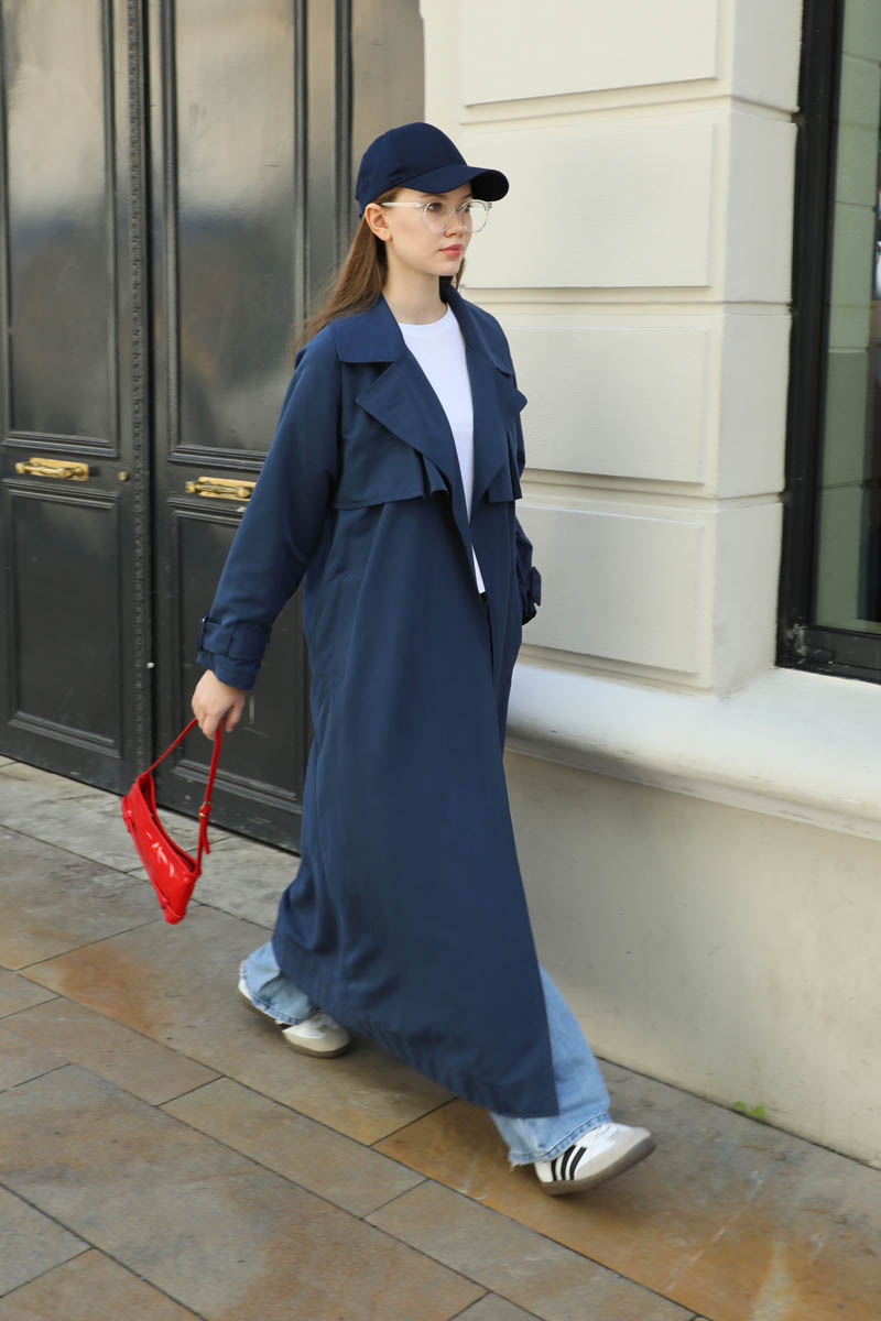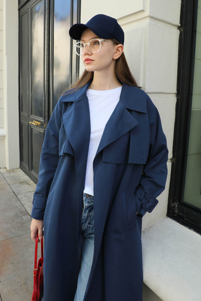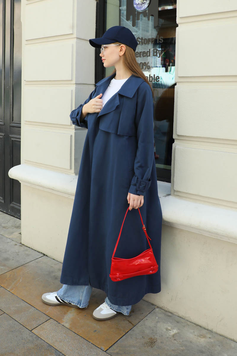 Pile Detay Trençkot Lacivert