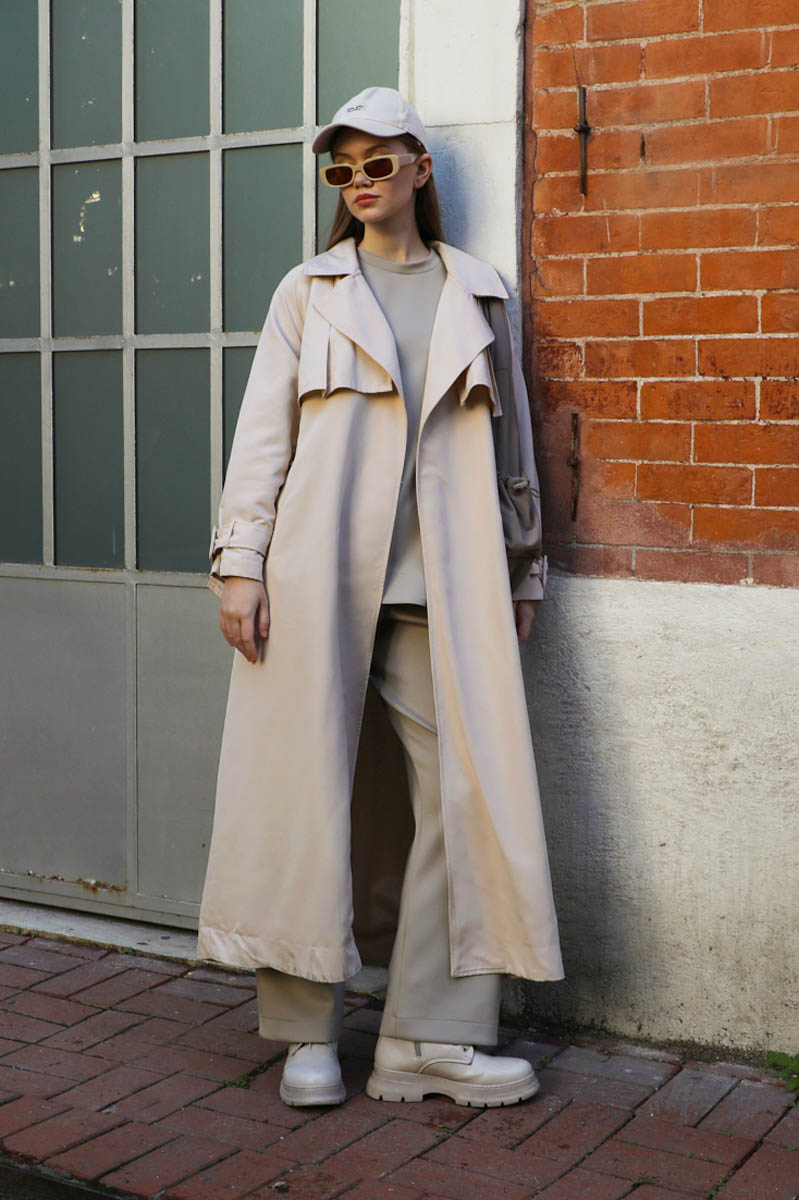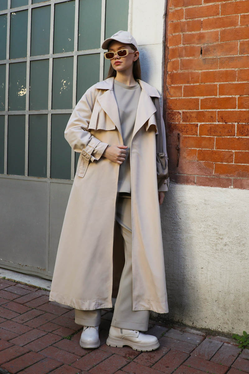Pile Detay Trençkot Taş