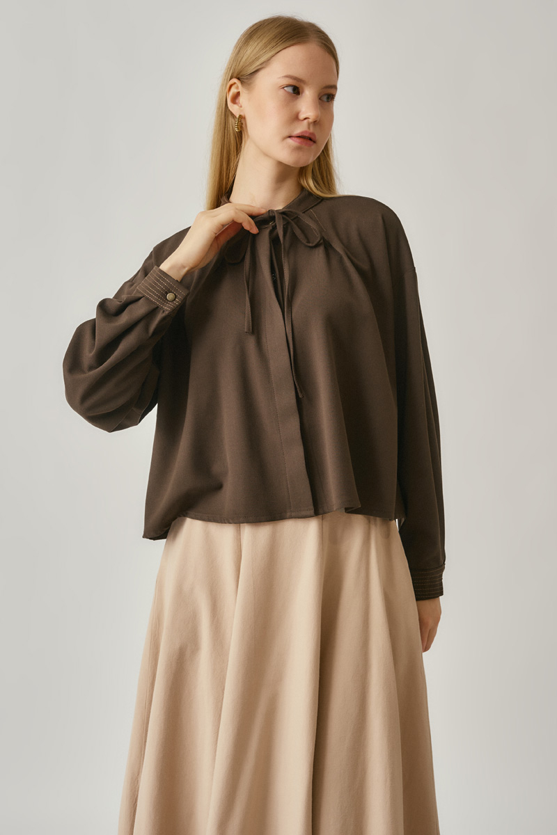 Pile Dikişli Gömlek Kahverengi, sade görünümüne zarif detaylar katan modern bir tasarıma sahiptir. Ön kısmındaki pile dikişler ve bağlama yaka detayıyla minimal çizgiyi korurken, tasarıma zarif bir hareket kazandırır. Hafif dokulu kumaşı sayesinde gün boyu konfor sunar ve hem ofis hem günlük kombinlerde kolayca yer bulur. Dökümlü yapısı ve salaş formu, stilinizi doğal bir zarafetle tamamlar.