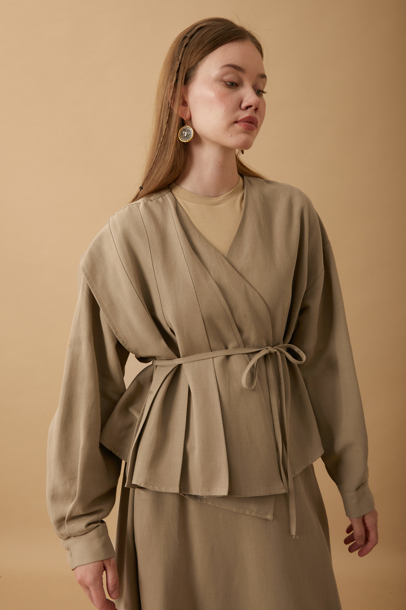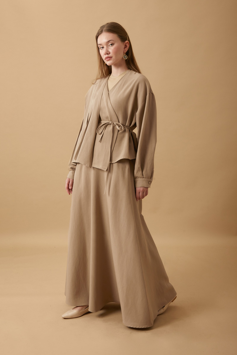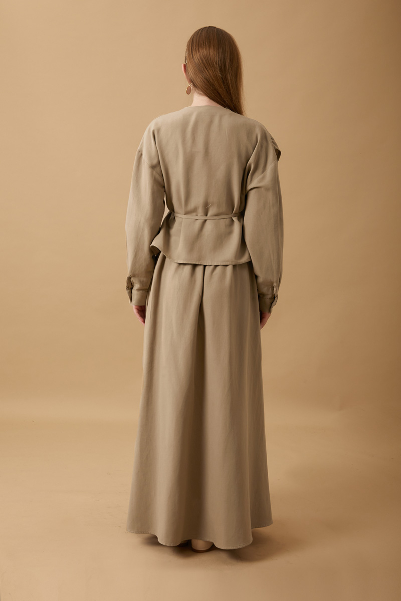 Pile Parça Detaylı Etek Takım Vizon