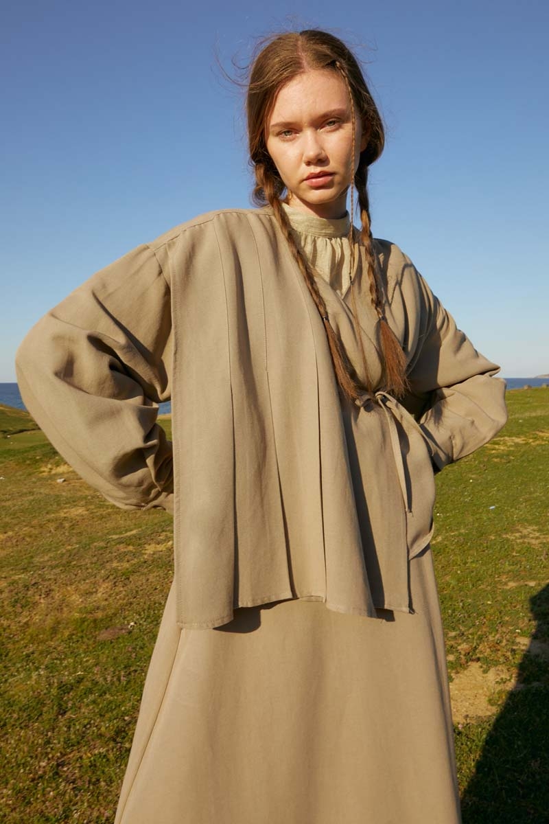 Pile Parça Detaylı Etek Takım Vizon, doğal görünümlü viskon keten kumaşı sayesinde nefes alır, hafiftir ve cilde yumuşak bir dokunuş sağlar. Asimetrik pile detaylı üst parça, modern çizgileriyle takımı tamamlar. Dökümlü, uzun etek ise hareket özgürlüğü sunarak gün boyu rahat hissettirir.