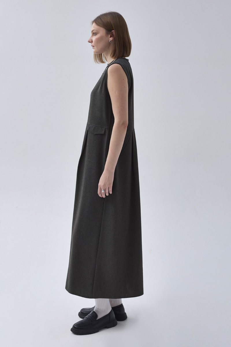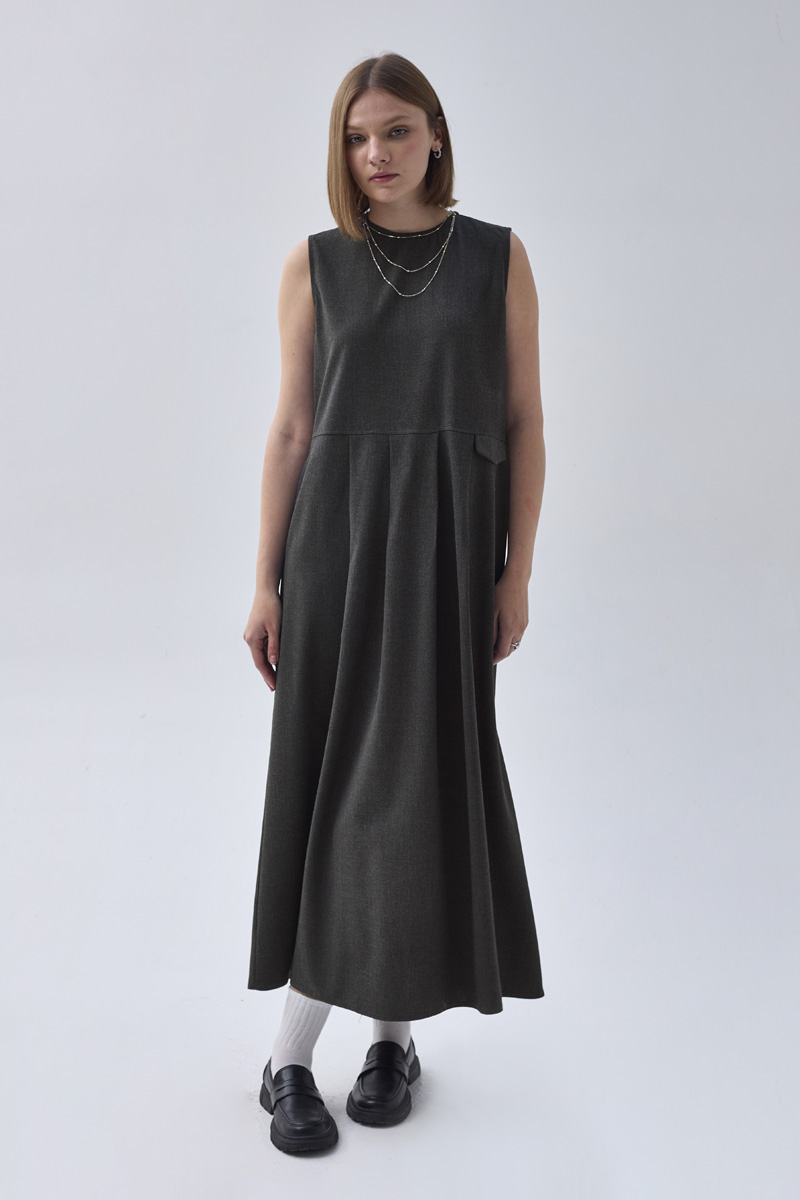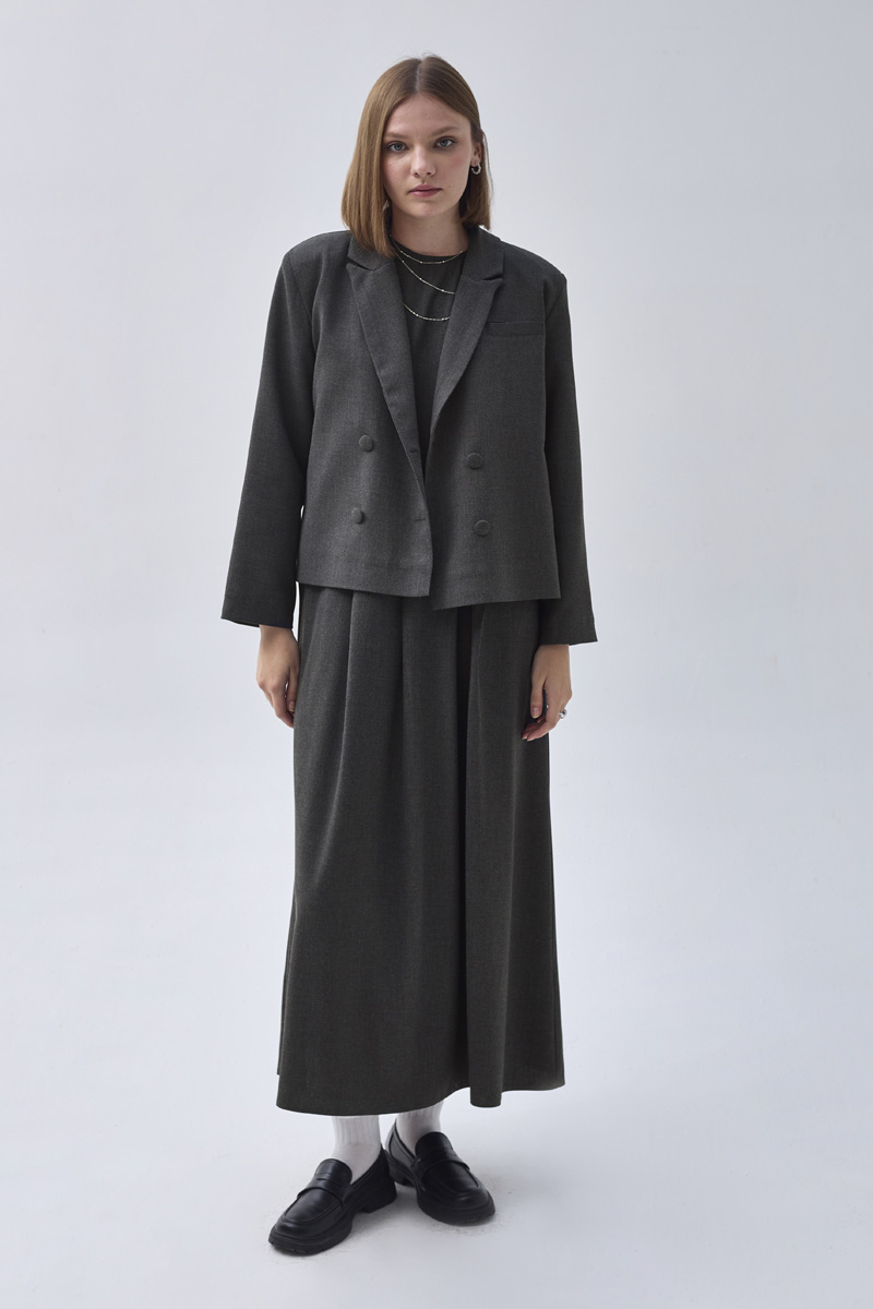Pile Robalı Jile Antrasit, sade ve zarif tasarımıyla günlük şıklık sunar. Robalı üst kısmı ve pile detaylı eteği ile hareketli bir siluet oluştururken, rahat kesimi sayesinde gün boyu konfor sağlar. İçine gömlek, bluz ya da triko kazaklarla kombinlenerek dört mevsim kullanılabilir.