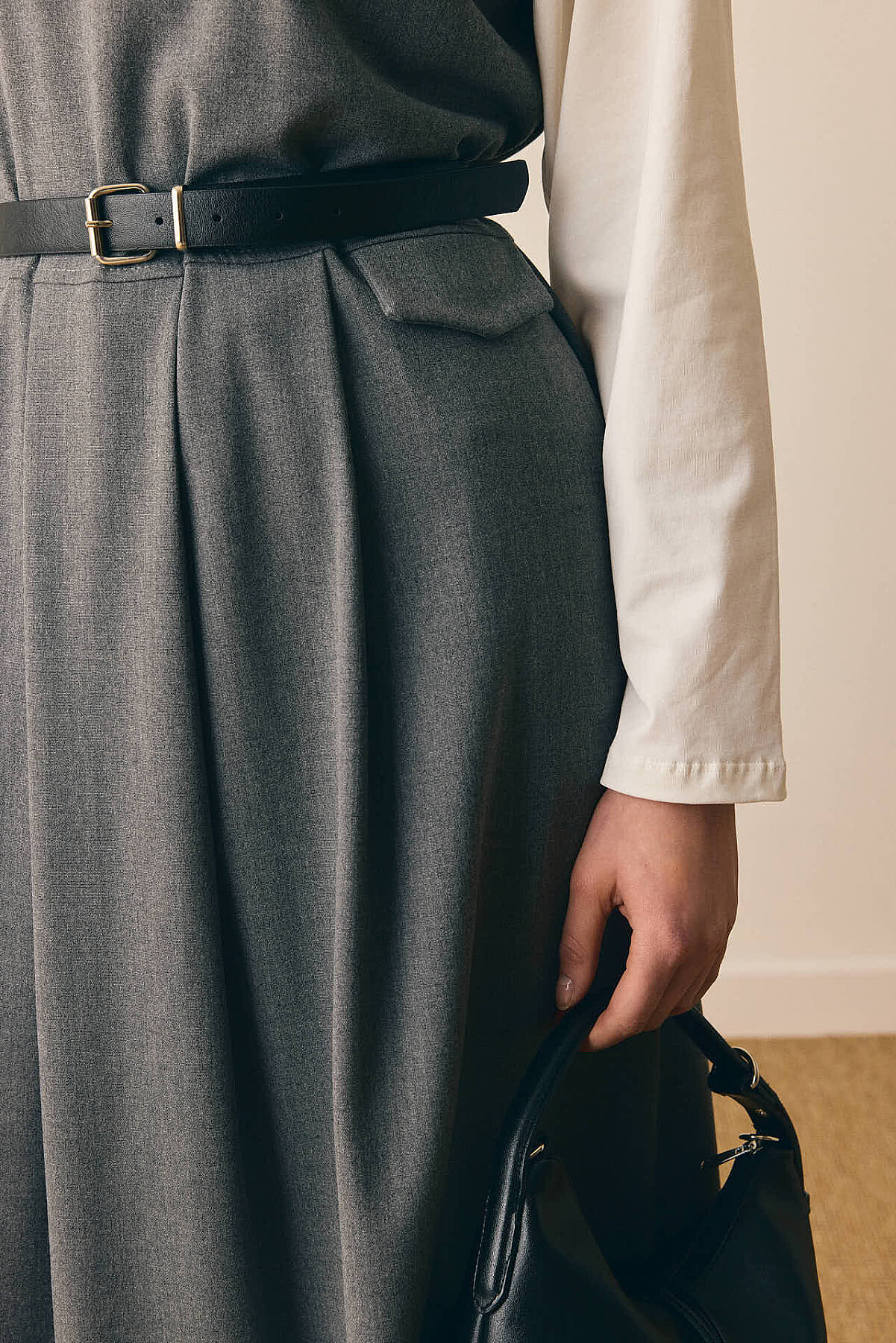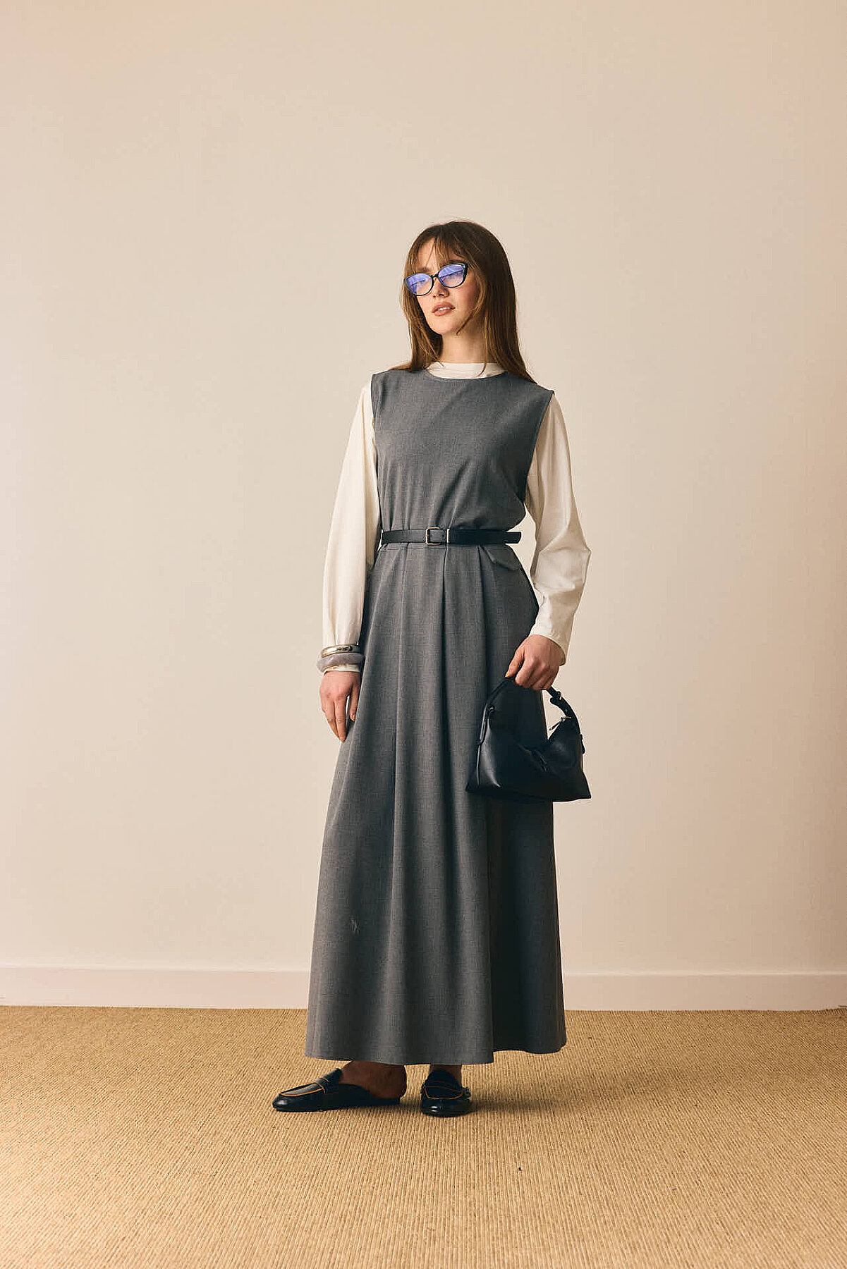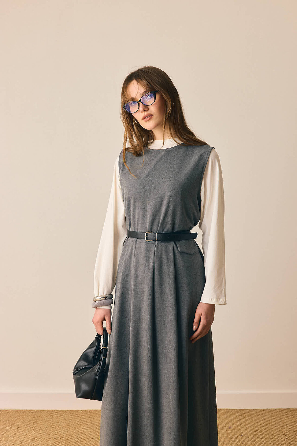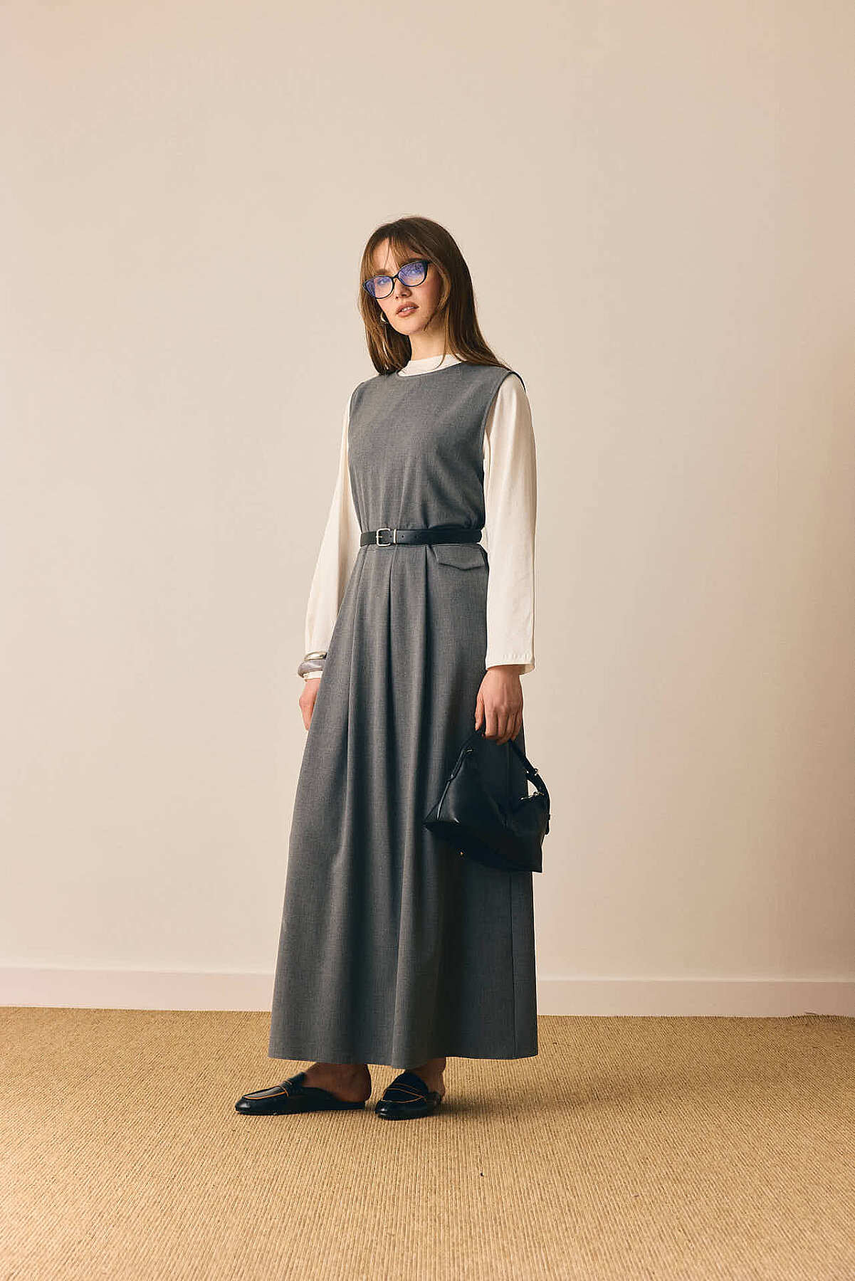 Pile Robalı Jile Acı Kahve, sade ve zarif tasarımıyla günlük şıklık sunar. Robalı üst kısmı ve pile detaylı eteği ile hareketli bir siluet oluştururken, rahat kesimi sayesinde gün boyu konfor sağlar. İçine gömlek, bluz ya da triko kazaklarla kombinlenerek dört mevsim kullanılabilir.