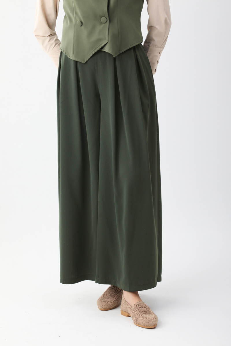 Pileli Bol Paça Pantolon Haki