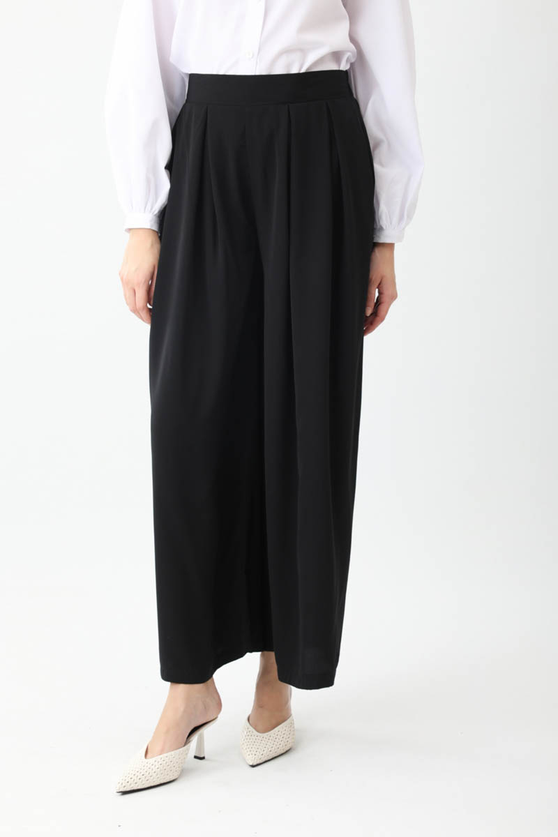 Pileli Bol Paça Pantolon Siyah