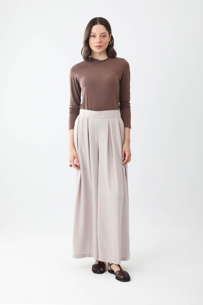 Pileli Bol Paça Pantolon Taş