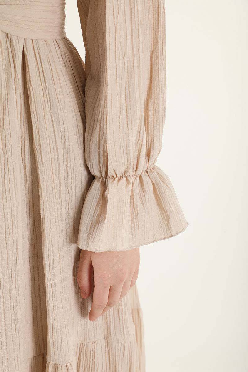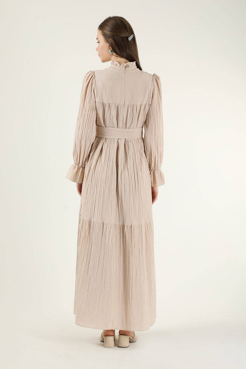 Pileli Elbise Vizon. Kolları gipelidir ve kolunda dantel detayı mevcuttur. Astarsızdır ve seyyar bel kuşağına sahiptir. Özel günleriniz de veya günlük olarak tercih edebilirsiniz.