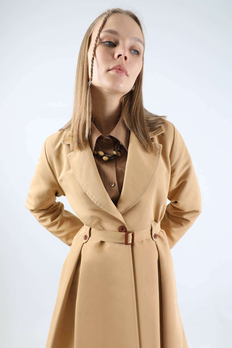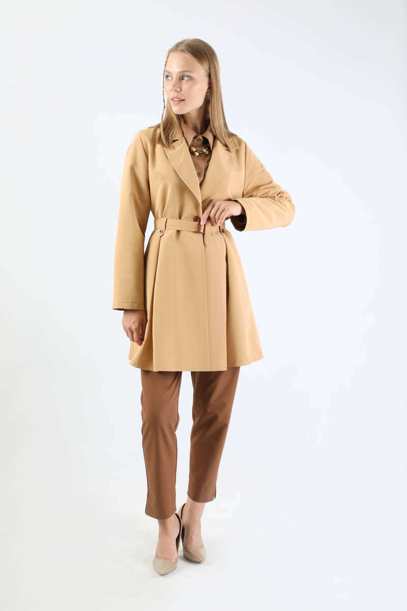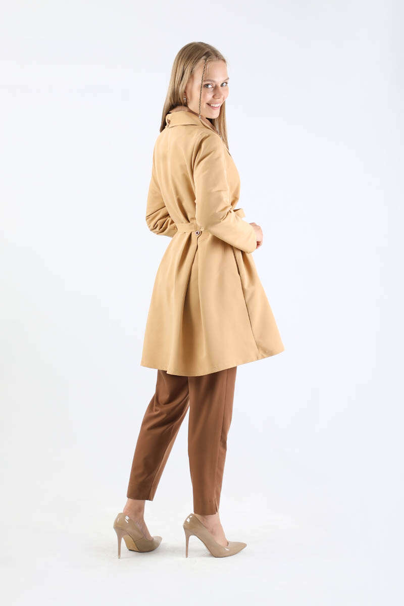 Pileli Kısa Trençkot Camel. Apolet detaylı köprü kuşaklıdır. Beli kesik detaylıdır. Ön ve arkadan çift A pile detaylıdır. Astarlıdır.. Günlük kullanım ve özel günlerinizde tercih edebilirsiniz.