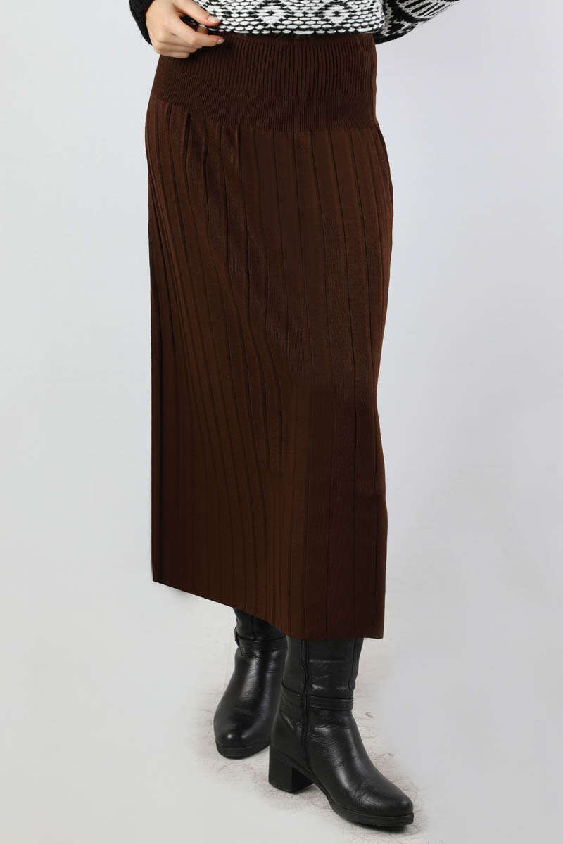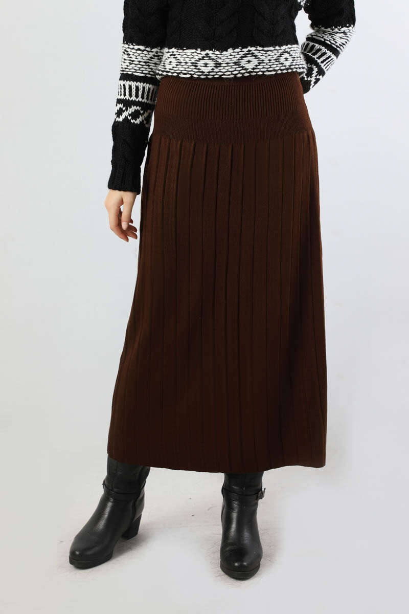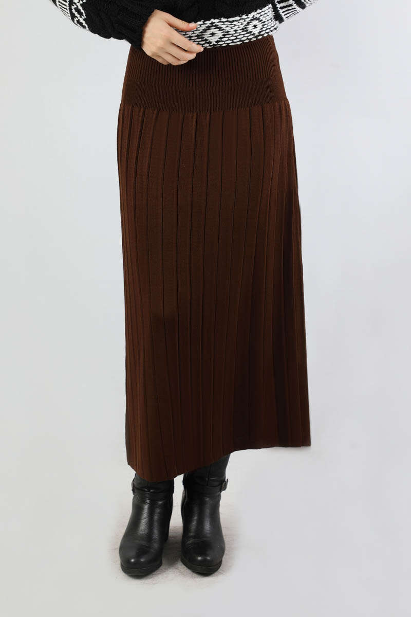 Pileli Tek Renk Etek Kahve. Geniş piliselidir. Dar kesimdir. Triko kumaştan üretilmiştir. Günlük kullanım ve özel günlerinizde tercih edebilirsiniz.