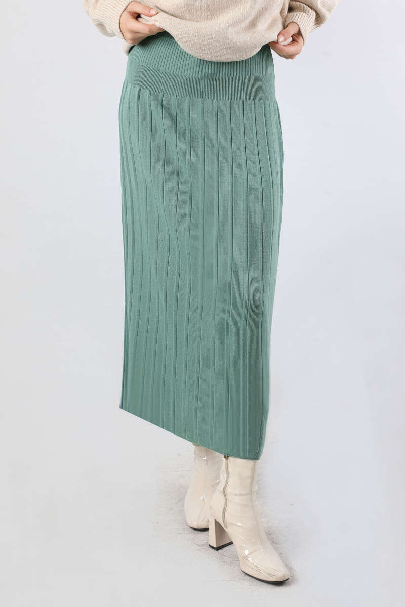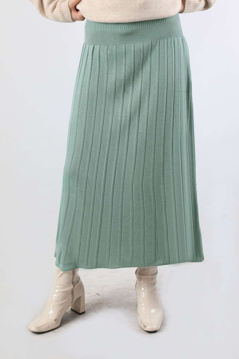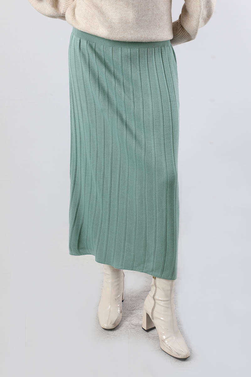 Pileli Tek Renk Etek Mint