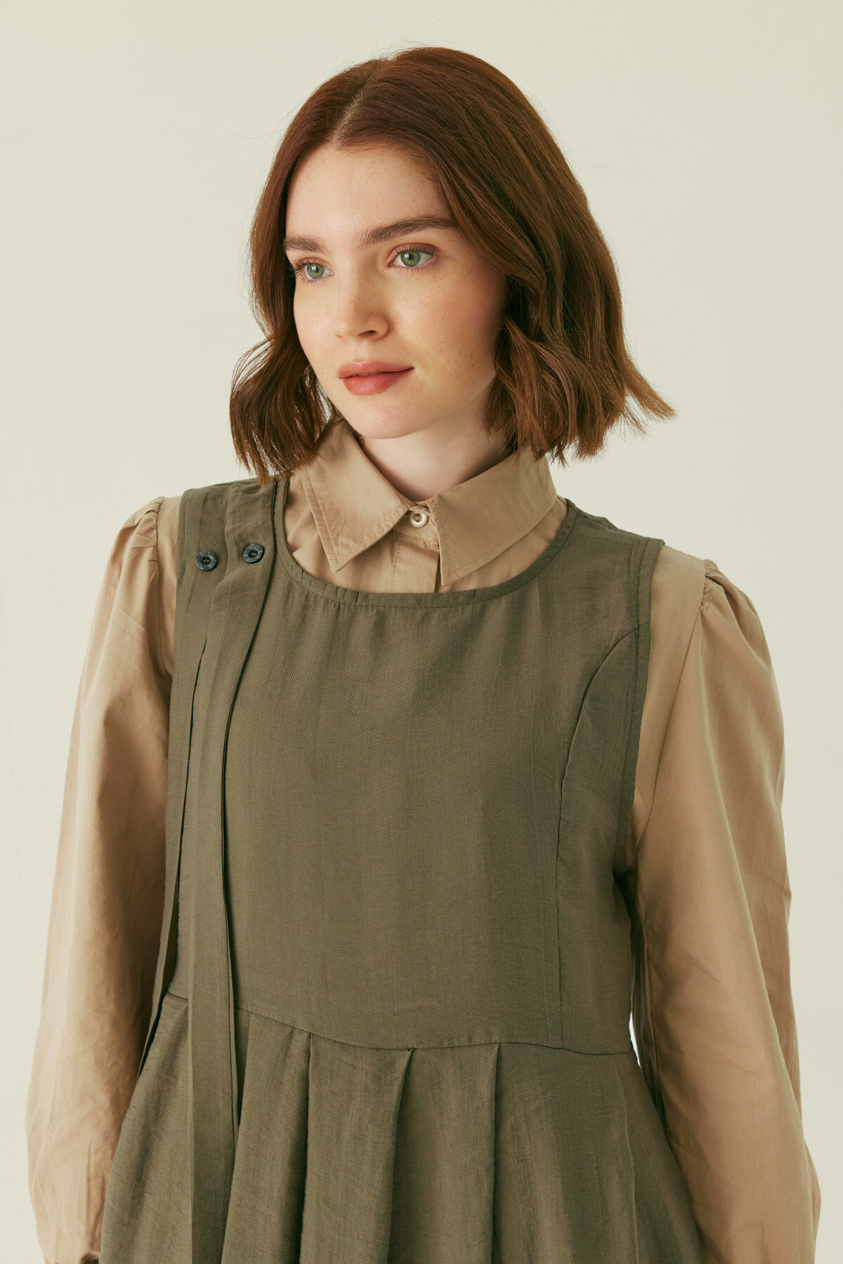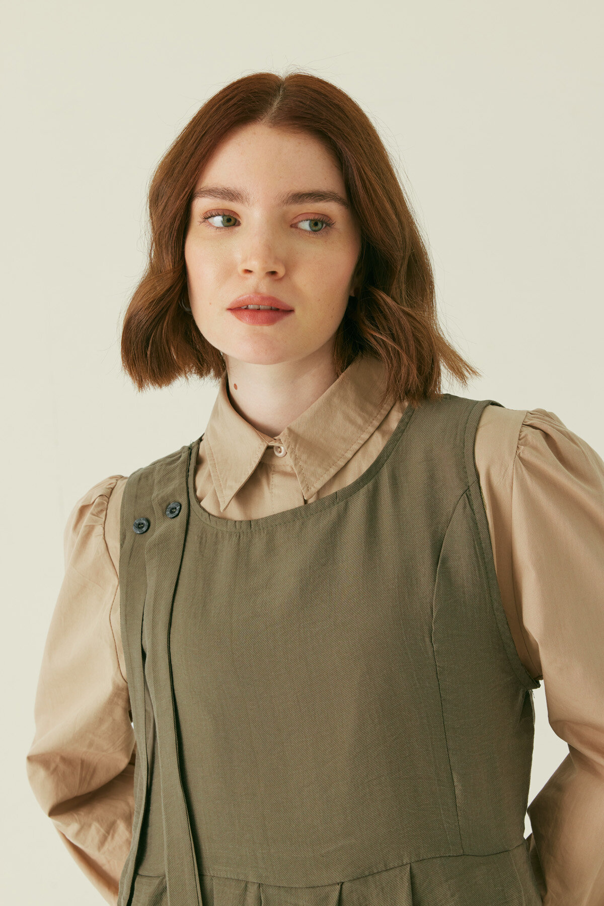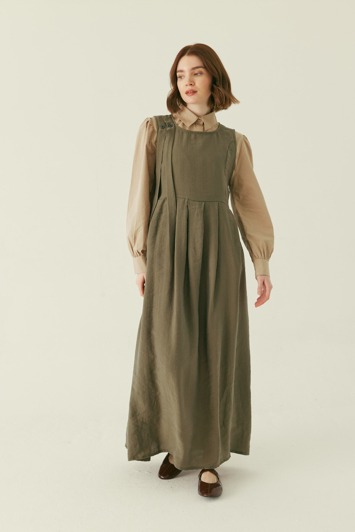 Zamansız jile formunu modern detaylarla buluşturan Pileli Tensel Jile, akıcı tensel dokusu ve rahat kalıbıyla dengeli bir siluet sunar. Ön kısımda yer alan pile detaylı kesim tasarıma zarif bir hareket kazandırırken, omuzdaki şerit detayı modele karakterli bir duruş katar. Askılı ve uzun formu sayesinde gömlekler, bluzlar ve ince trikolarla katmanlı kullanıma uygundur; hem günlük hem şehir stilinde rahatlıkla tercih edilebilir.