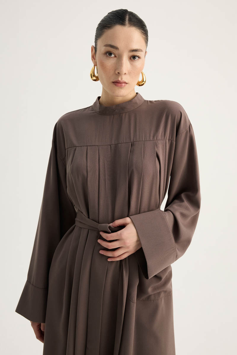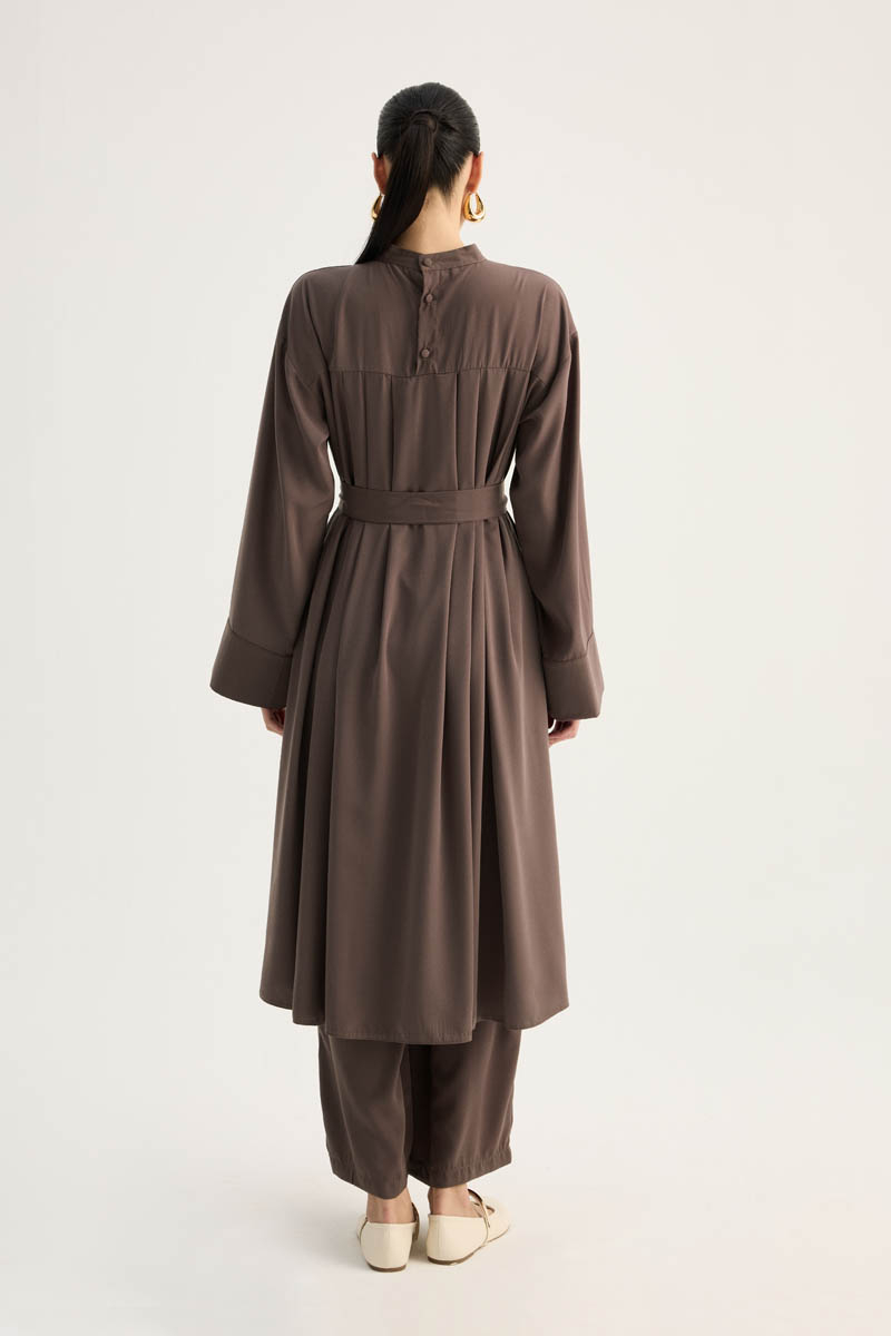 Pileli Tunik Takım Kahverengi