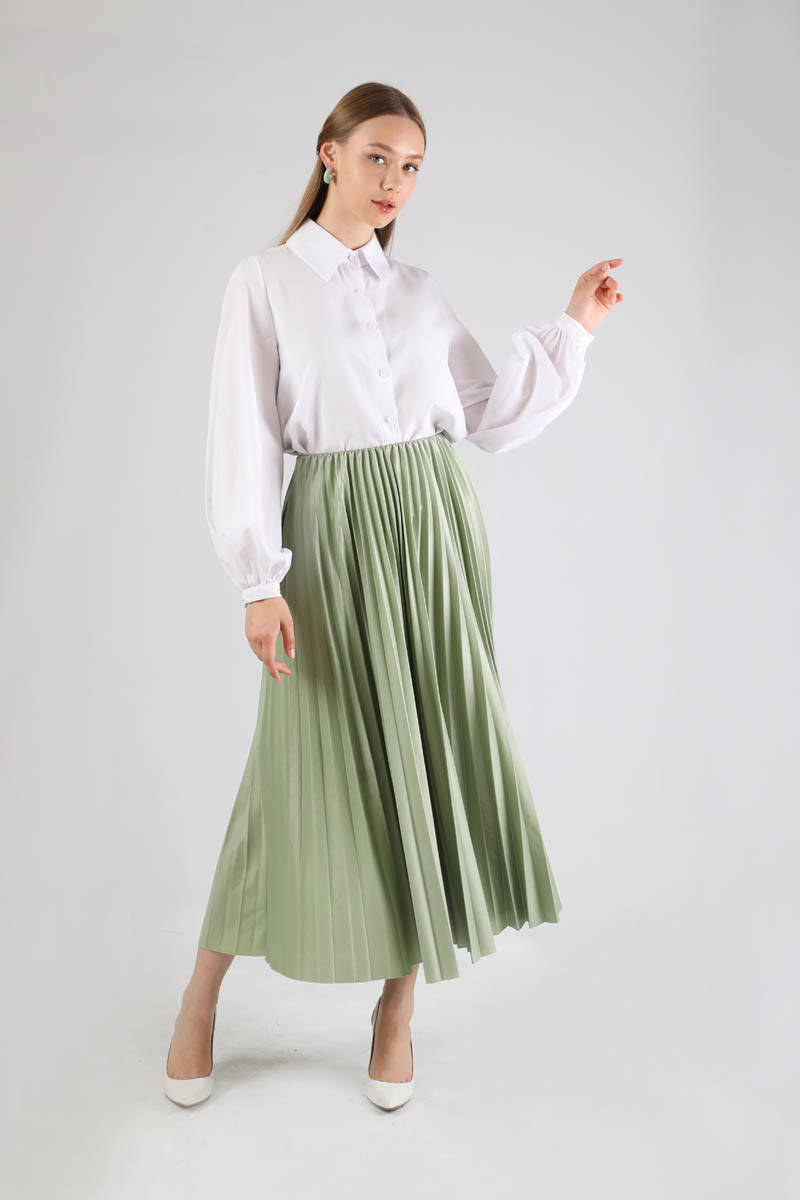 Piliseli Etek Mint. Beli latiklidir. Piliselidir. Astarsızdır (İç göstermez). Normal kalıptır. Kendi bedeninizi sipariş verebilirsiniz. Günlük Kullanım veya Özel günlerinizde tercih edebilirsiniz.