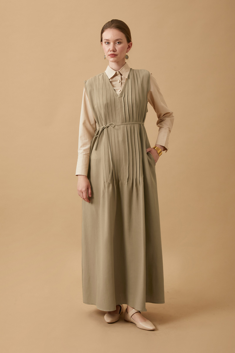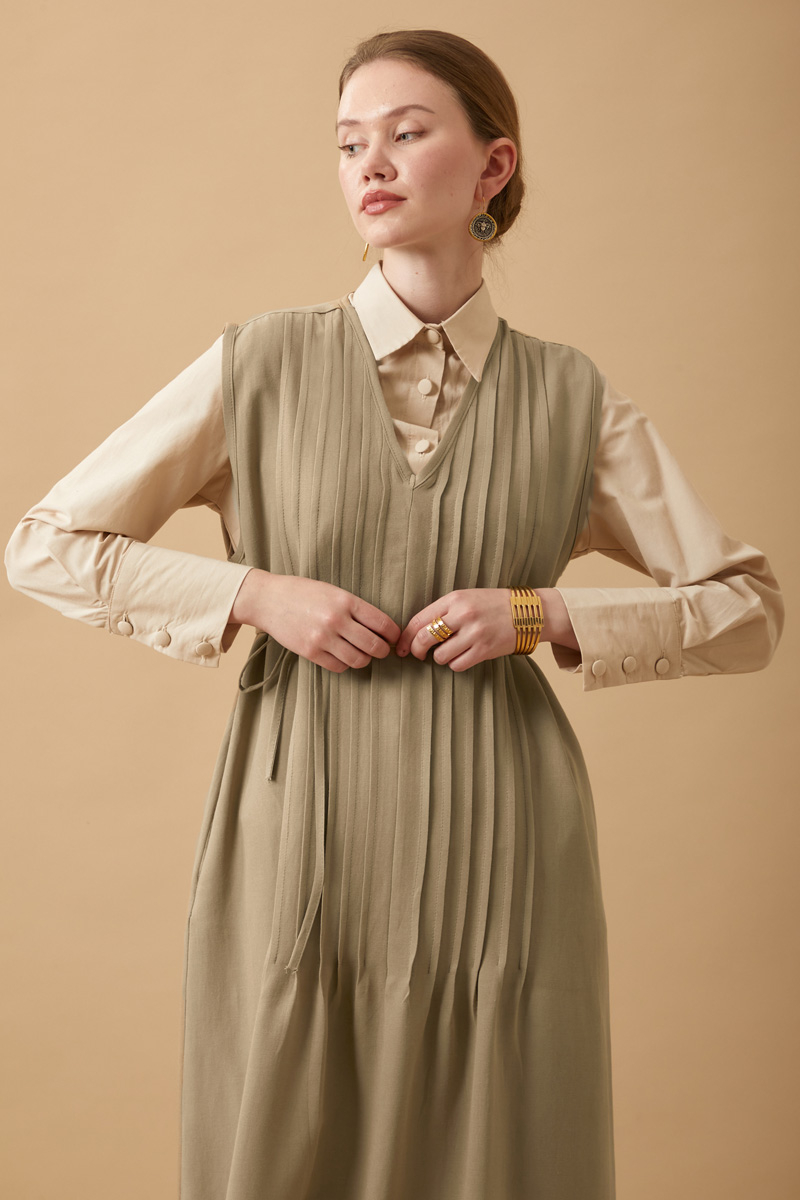 With its elegant design and relaxed cut, this dress stands out for both comfort and style. Made from a breathable and lightweight viscose-linen blend, it ensures all-day ease. The long sleeves, cuff details, and waist-defining belt create a feminine silhouette.