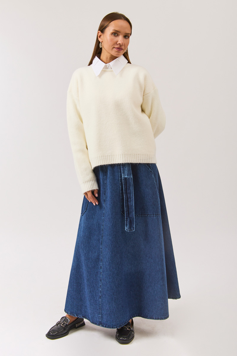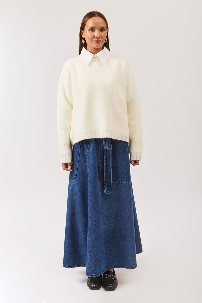 With its loose fit and relaxed silhouette, this sweater is one of the most comfortable pieces for everyday wear. The round neckline and piped finishes on the cuffs and hem add a modern touch, while the soft knit fabric keeps you warm on chilly days. Perfect for versatile styling, it pairs effortlessly with everything from jeans to skirts.