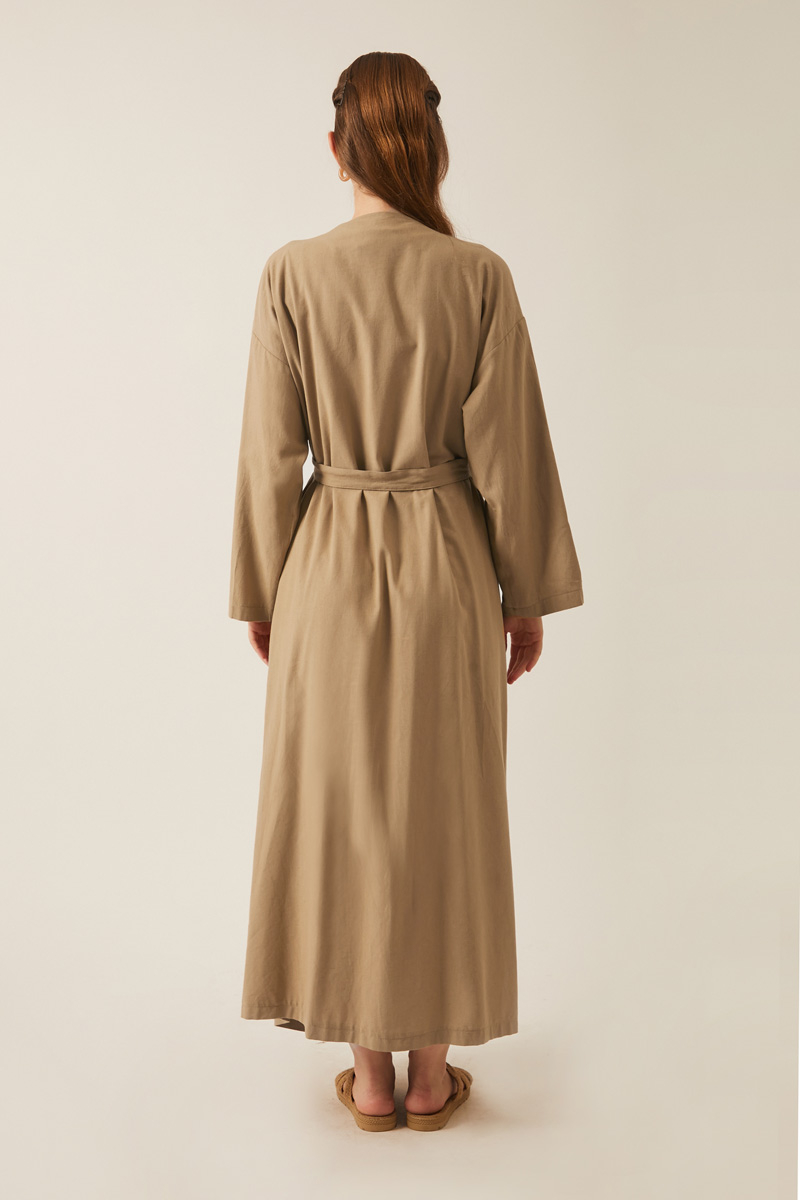 Designed for women who appreciate a simple yet refined style, this abaya offers elegance for special occasions and comfort for everyday wear. Crafted from a lightweight, breathable linen-blend fabric, it provides year-round ease and effortless grace.