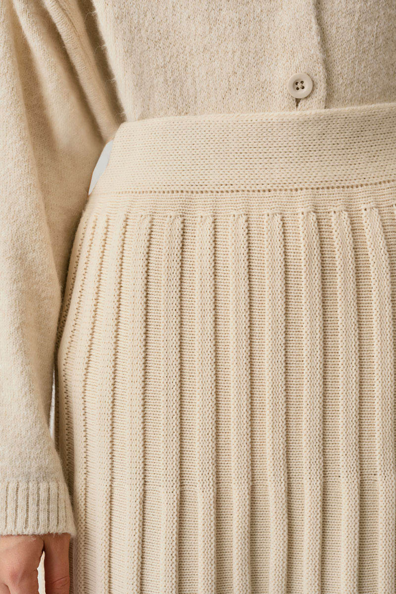 Pleated Knit Skirt Ecru is one of the coziest pieces of the winter season, featuring a soft texture and fluid form. The vertical pleat design creates an elegant silhouette, while the elastic waistband ensures all-day comfort. Its thick knit texture provides warmth and pairs easily with both classic and modern outfits. Combine it with sweaters, shirts, or cardigans to create your favorite seasonal look.