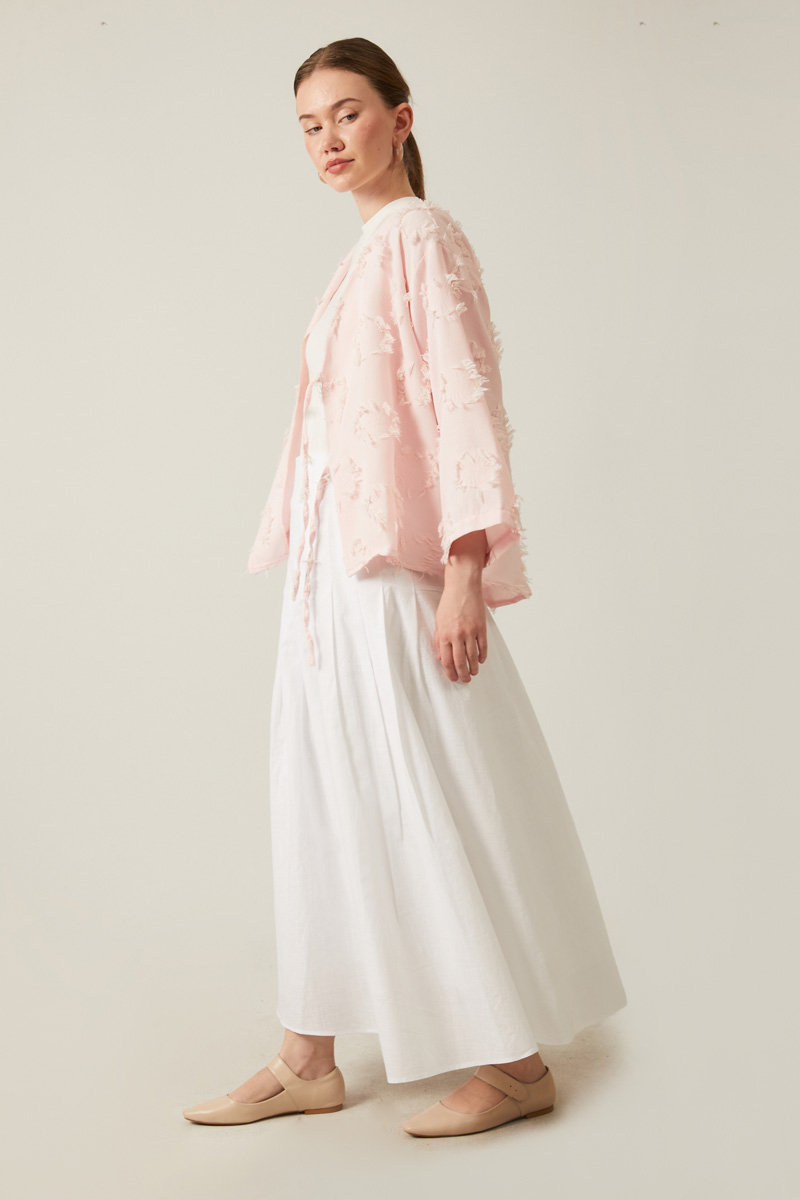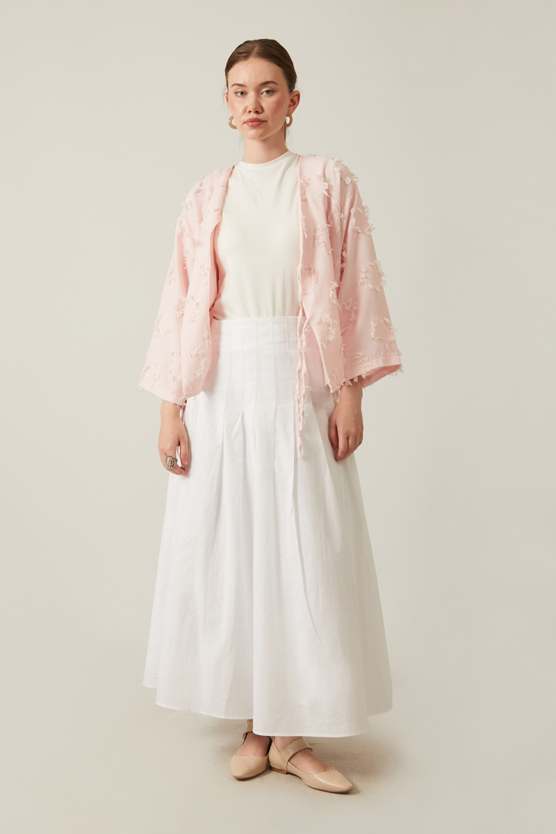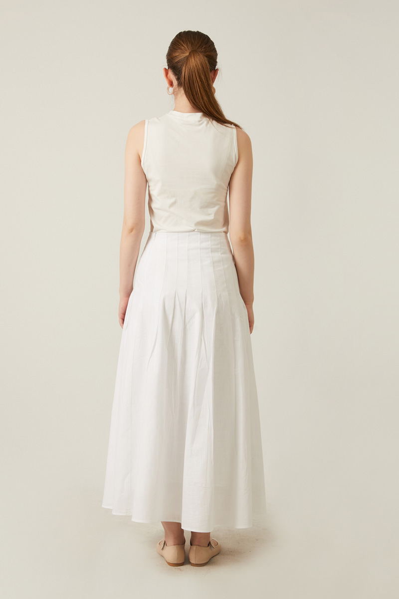 With its flowing and lightweight fabric, this skirt drapes elegantly on the body. The wide and neat pleats add both volume and movement, creating a relaxed silhouette. Its simple and timeless design allows for easy pairing with a variety of tops.
