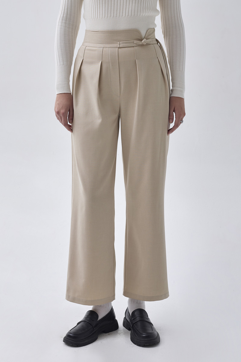 With its elegant and modern cut, these trousers offer effortless style for both everyday outfits and office looks. The high-waisted form gains a dynamic touch with pleat detailing at the waistband, while the straight-leg cut ensures comfortable wear. Versatile and timeless, they can be easily styled with both classic and casual combinations.
