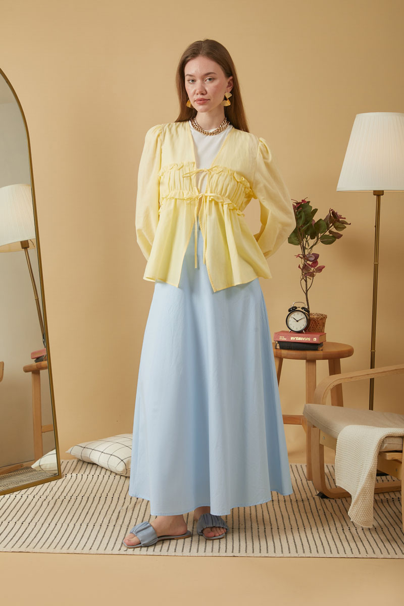 Poplin Etek Tereyağı Sarısı. Poplin kumaşının doğal ve hafif dokusuna sahip bu midi etek, gün boyu rahatlık ve şıklık sunar. Klasik kesimi ve düz rengiyle zamansız bir parça olan bu etek, dolabınızın vazgeçilmezlerinden olmaya aday. Poplinin tok duruşu sayesinde formunu korurken, nefes alabilen yapısıyla özellikle bahar ve yaz aylarında ideal bir kullanım sunar. Hem spor hem de şık kombinlerinizde rahatlıkla kullanabilirsiniz.