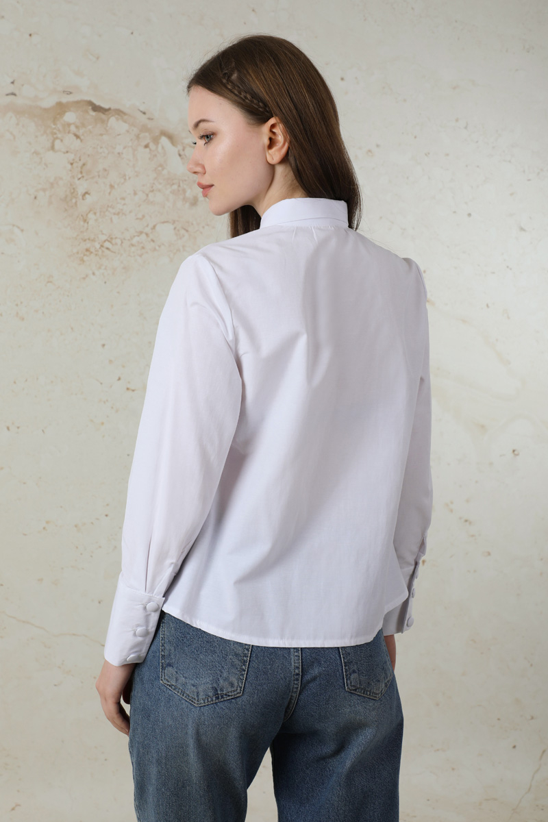 Poplin Kısa Gömlek Ekru. Geniş manşetlidir. Manşet pens detaylıdır. Önden düğme detaylıdır. Günlük kullanım ve özel günlerinizde tercih edebilirsiniz.