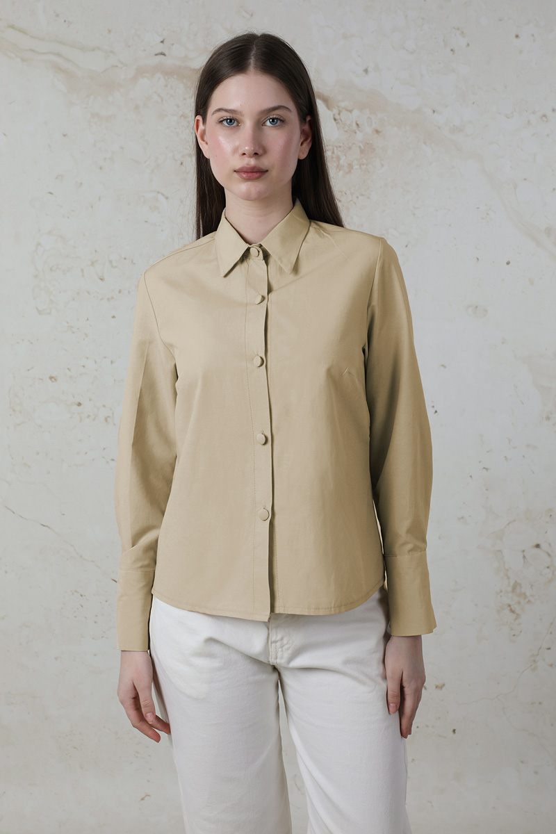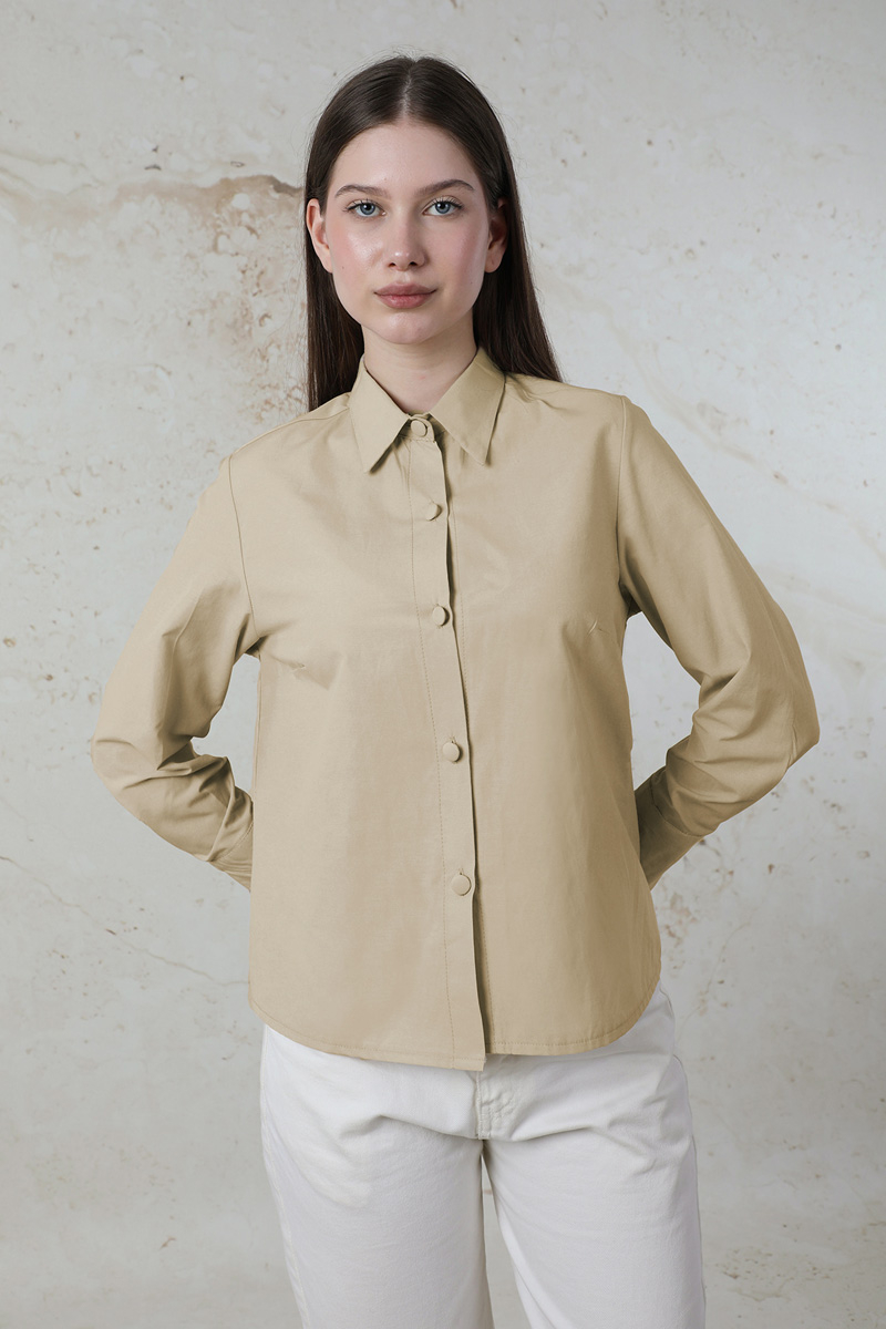 Poplin Kısa Gömlek Taş. Geniş manşetlidir. Manşet pens detaylıdır. Önden düğme detaylıdır. Günlük kullanım ve özel günlerinizde tercih edebilirsiniz.
