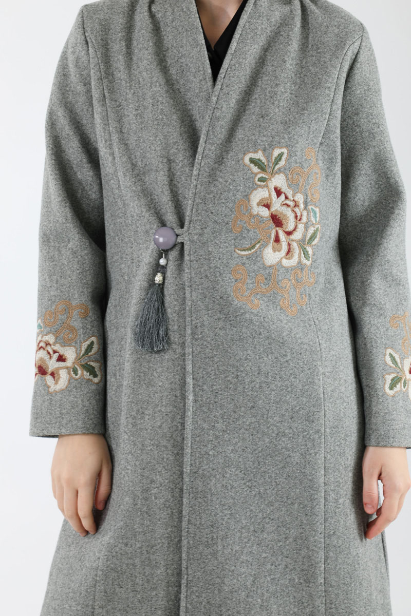 Püsküllü Kaşe Kaban Gri. Öndenpüskül detaylı düğmelidir. .Yandan ceplidir. Tam kalıptır. Astarlıdır.