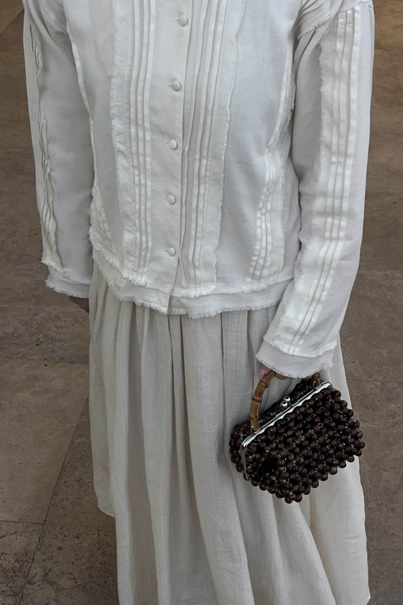 Püsküllü Kısa Gömlek Beyaz