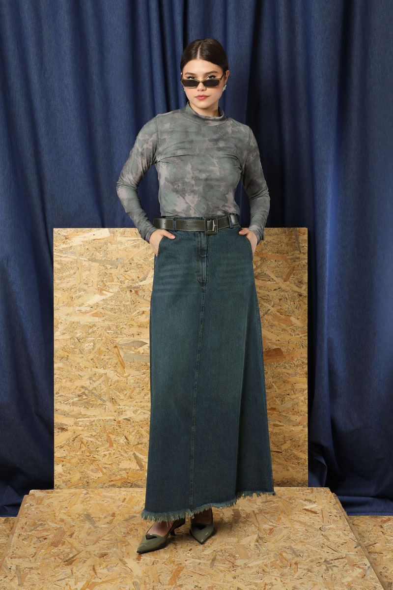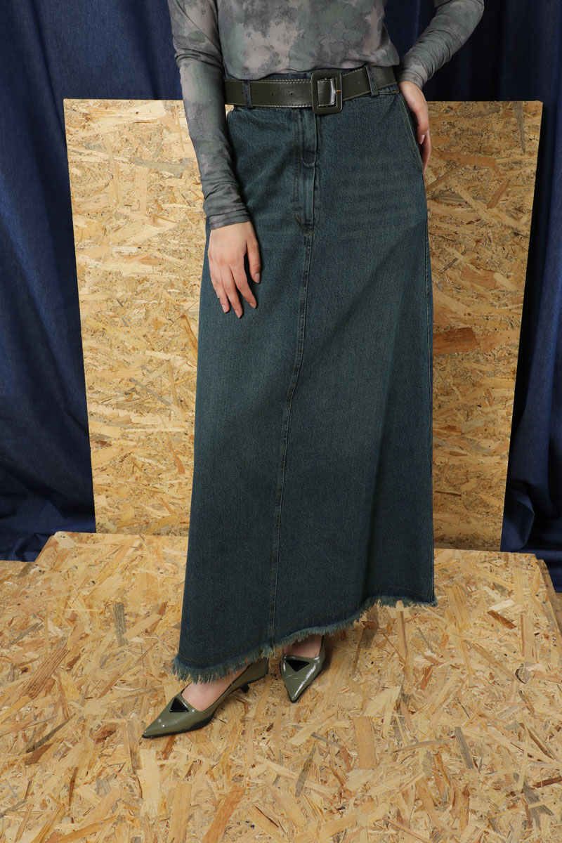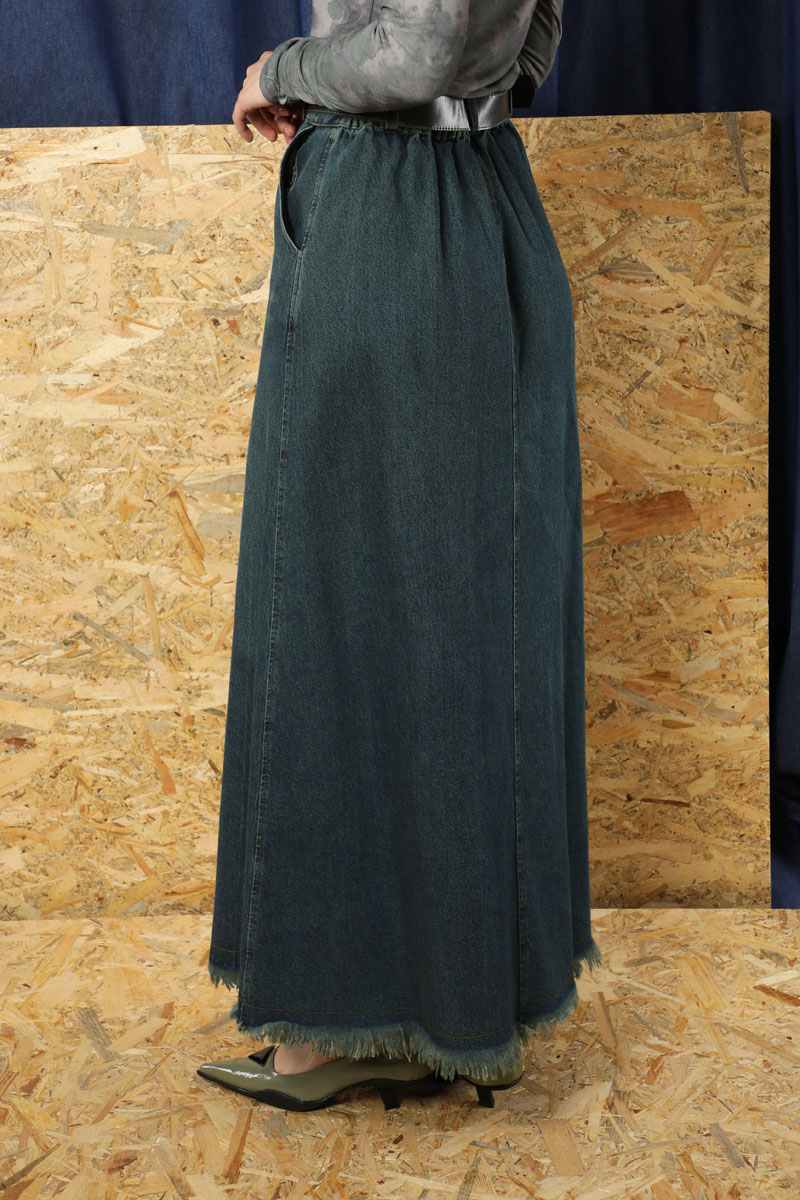 Püsküllü Kot Etek Koyu Mavi. Önden fermuar detaylıdır. Düğmelidir. Yandan ceplidir. Etek beli lastiklidir. Etek ucu püskül detaylıdır. Günlük kullanım ve özel günlerinizde tercih edebilirsiniz.