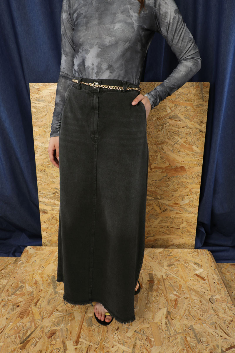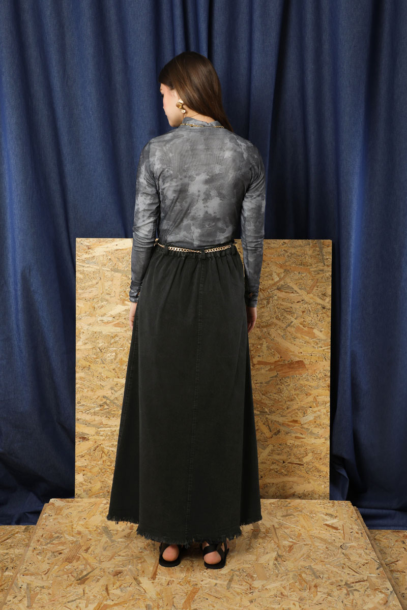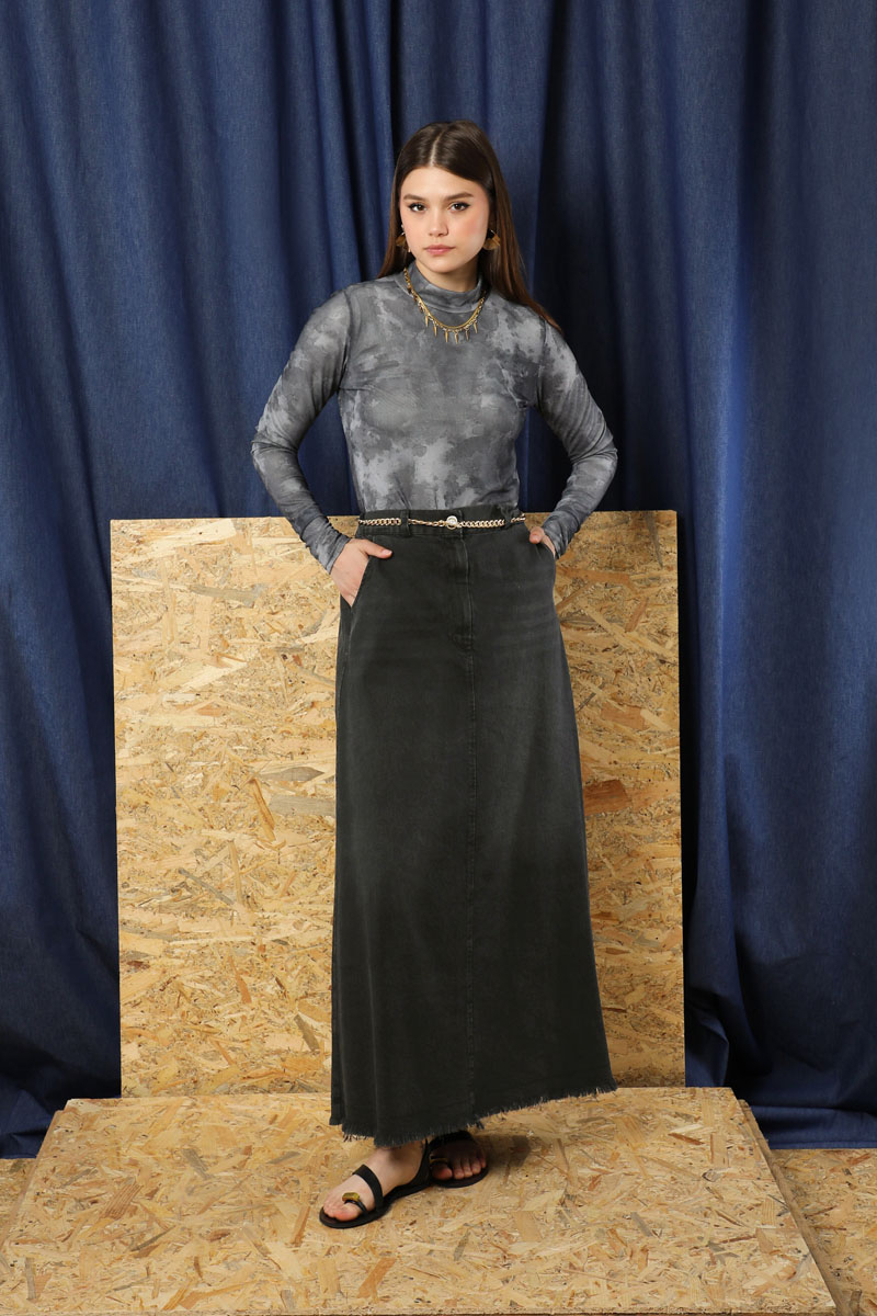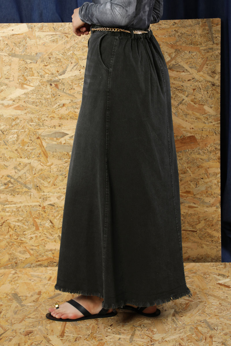 Püsküllü Kot Etek Siyah. Önden fermuar detaylıdır. Düğmelidir. Yandan ceplidir. Etek beli lastiklidir. Etek ucu püskül detaylıdır. Günlük kullanım ve özel günlerinizde tercih edebilirsiniz.