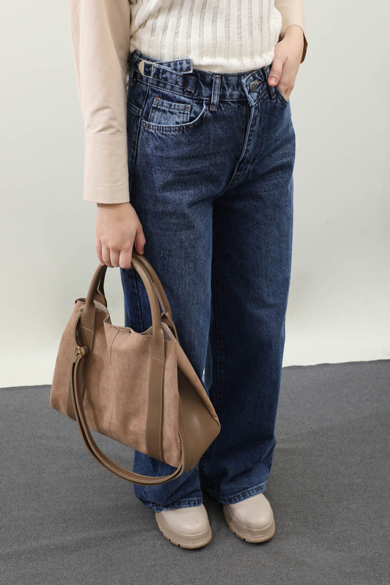 Puslu Denim Pantolon Koyu Mavi. Belden ayarlanabilir kemer detaylıdır, düğmeli ve fermuarlıdır, arka ve önden ceplidir, geniş paçadır. Günlük kullanım ve özel günlerinizde tercih edebilirsiniz.