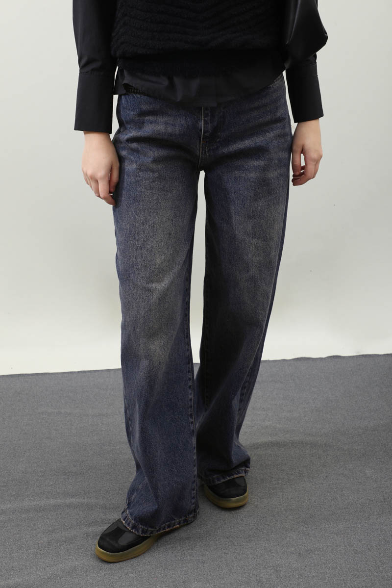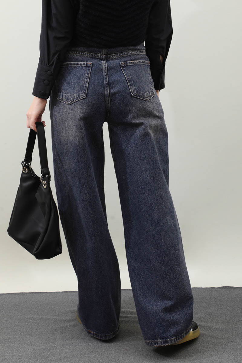 Puslu Denim Pantolon Lacivert. Belden ayarlanabilir kemer detaylıdır, düğmeli ve fermuarlıdır, arka ve önden ceplidir, geniş paçadır. Günlük kullanım ve özel günlerinizde tercih edebilirsiniz.