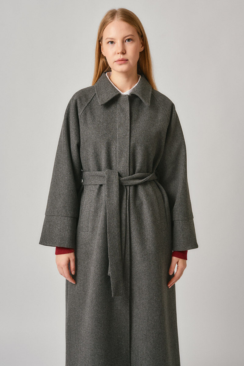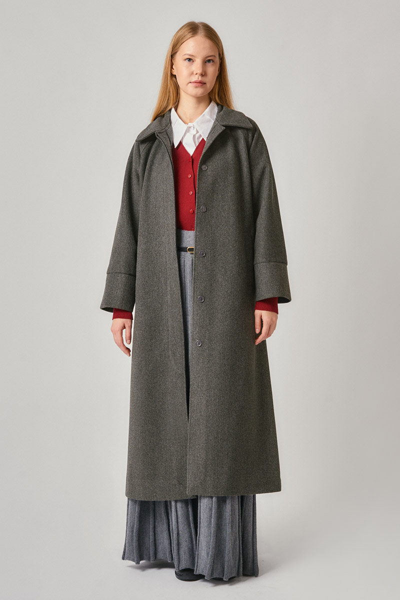 Raglan Sleeve Basic Coat Anthracite offers timeless elegance with its clean, minimal lines. Designed with raglan sleeves for a relaxed fit, this piece maintains its structured stance thanks to its firm fabric. The minimal button detailing and straight cut make it suitable for both classic and modern combinations. A key outerwear piece that complements everyday and city looks throughout the winter season.