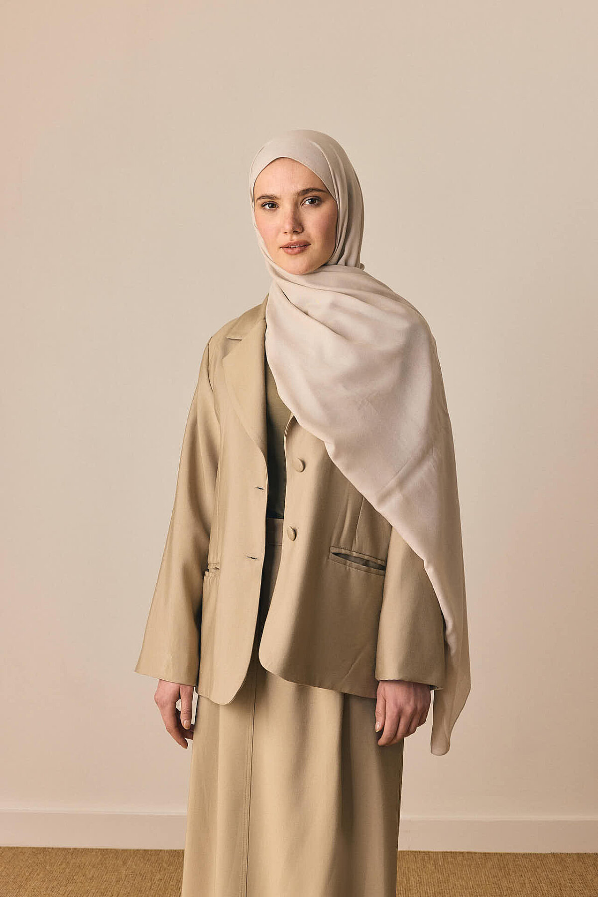 Yumuşak dokusu ve hafif yapısıyla öne çıkan Rami Şal, günlük kullanımdan özel gün kombinlerine kadar birçok stile uyum sağlayan zarif bir tamamlayıcıdır. Doğal duruşu ve dökümlü formu sayesinde başta rahat bir kullanım sunarken, sade ve zamansız görünümüyle kombinlerinizi dengeli bir şekilde tamamlar.