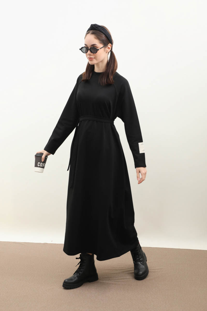 Reglan Kol Basic Elbise Siyah. Bisiklet yakadır, yakası ribanalıdır, reglan kolludur, kol kısmında etiket detayı mevcuttur, cepsizdir, astarsızdır, kuşaklıdır. Günlük kullanım için uygundur.