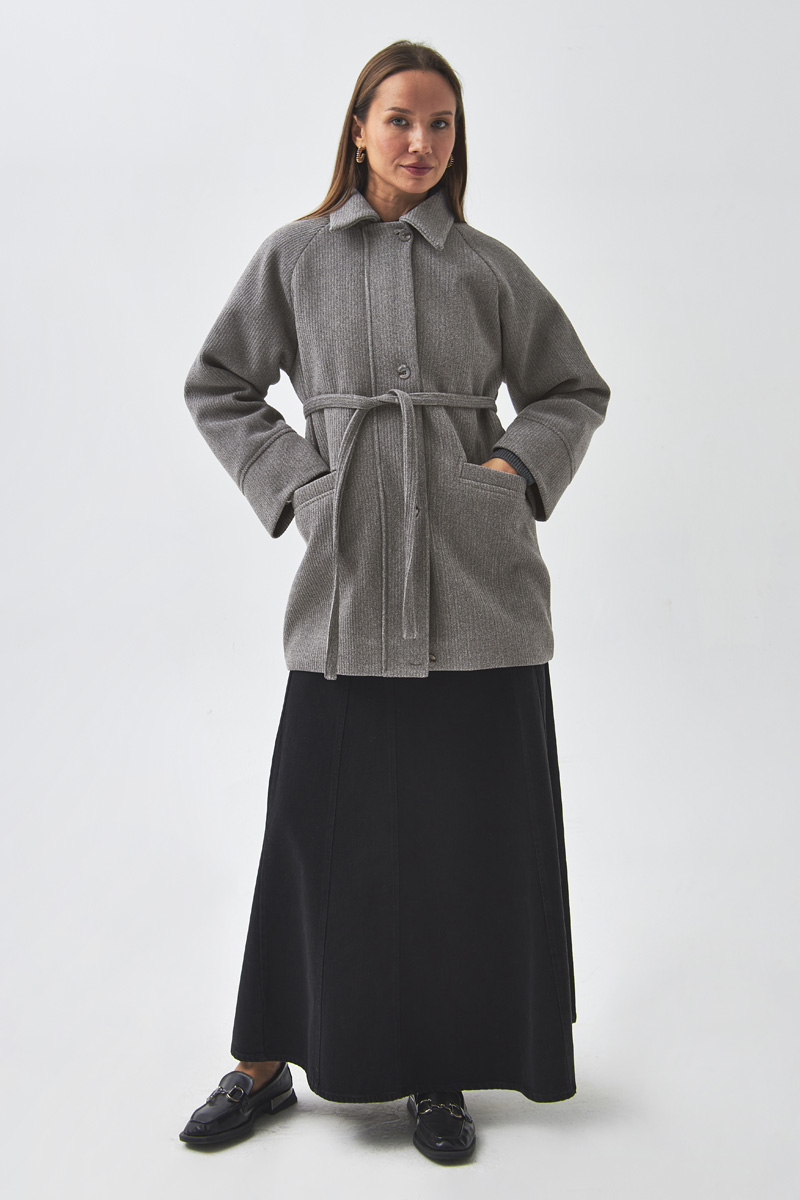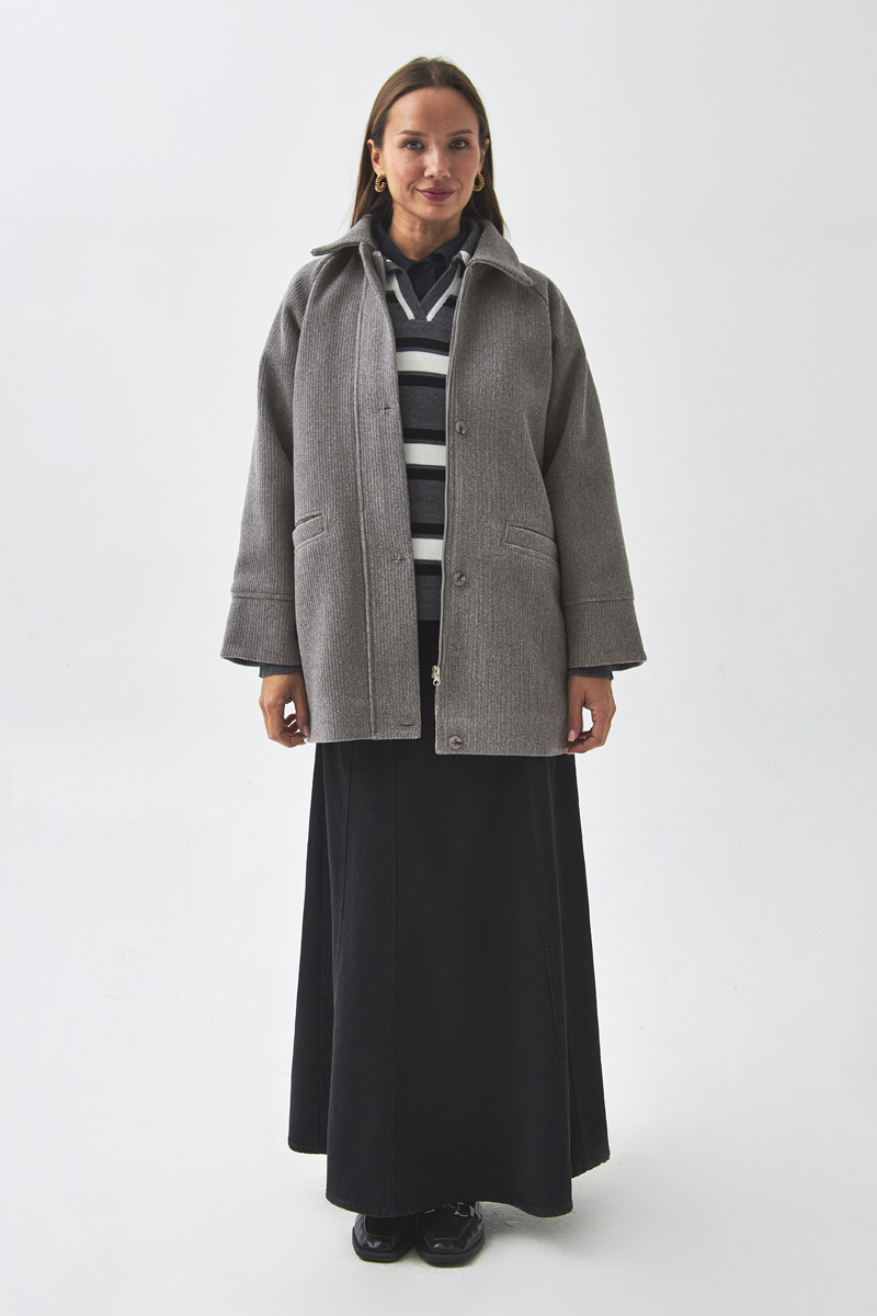 Reglan Kol Kısa Kaban Gri