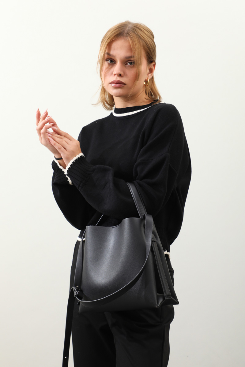 Ribanalı Kısa Kazak Siyah