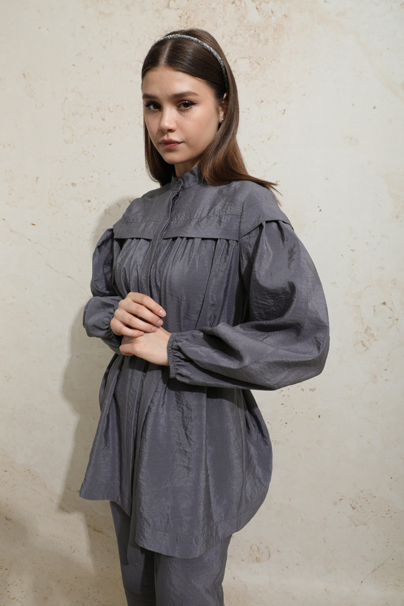 Robası Detaylı Tunik Takım Füme