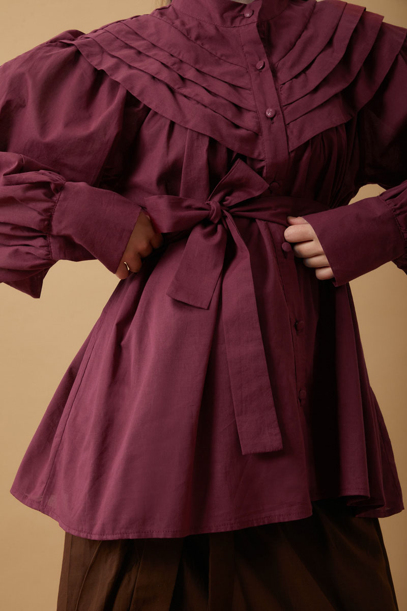 Roza Nervürlü Gömlek Bordo