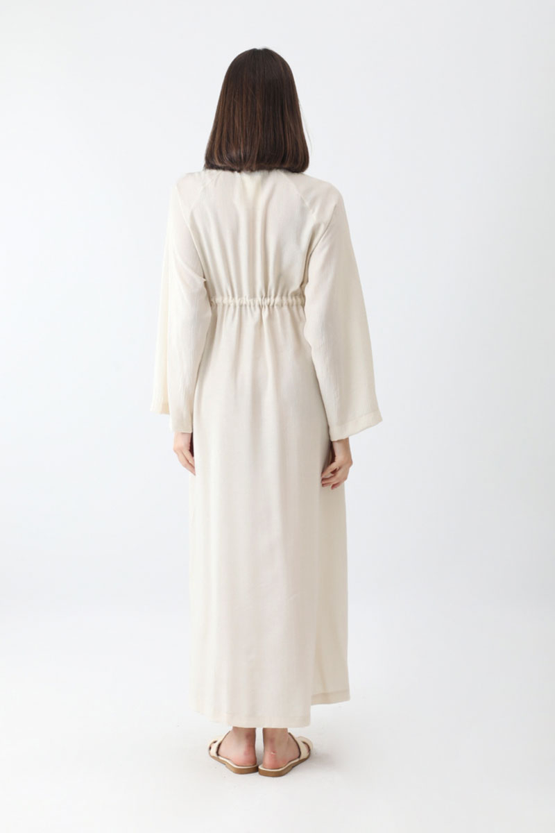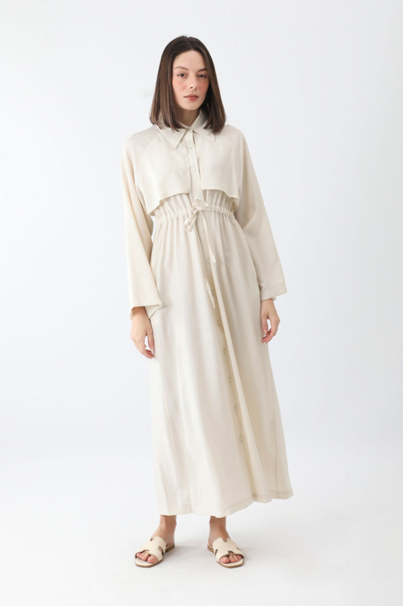 Rüzgarlıklı Gömlek Elbise Beyaz. Gömlek yakadır, önden rüzgarlıklıdır, tünel bağlamalıdır, reglan kolludur, önden düğmelidir, yandan ceplidir, astarsızdır, Günlük kullanım için uygundur.