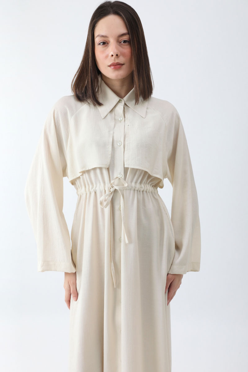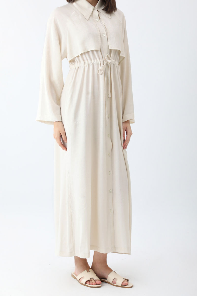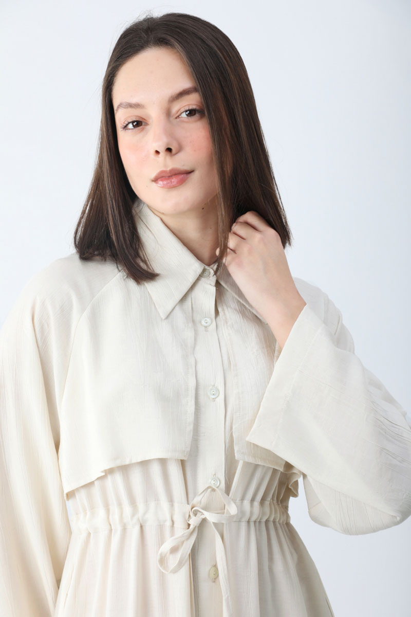 Rüzgarlıklı Gömlek Elbise Beyaz