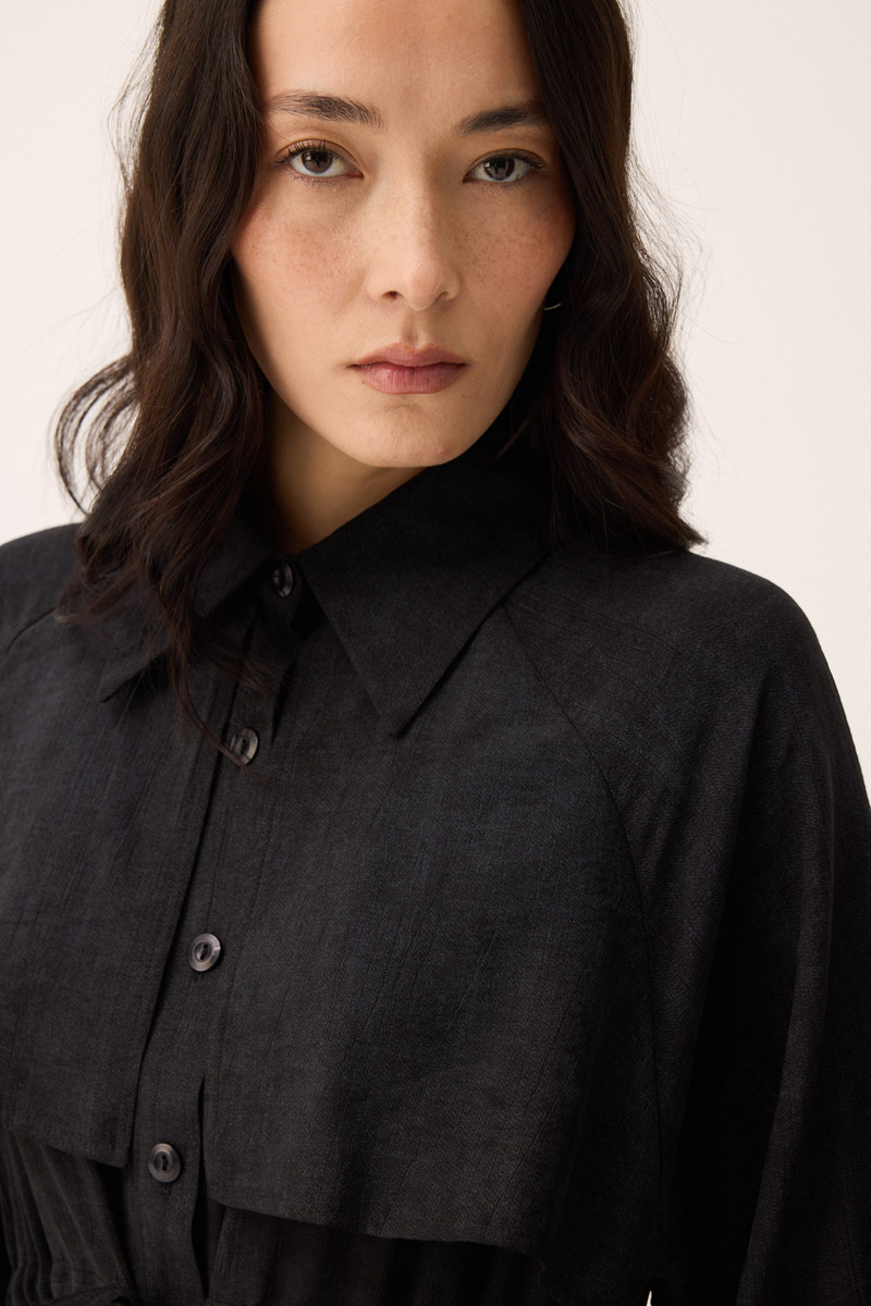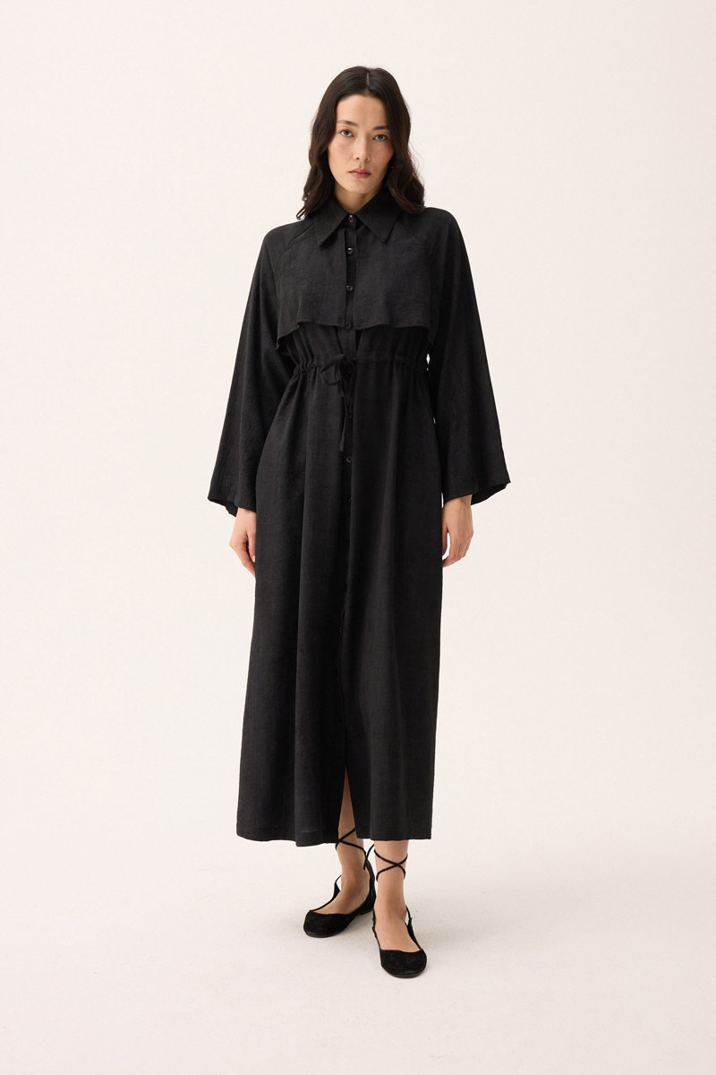 Rüzgarlıklı Gömlek Elbise Siyah