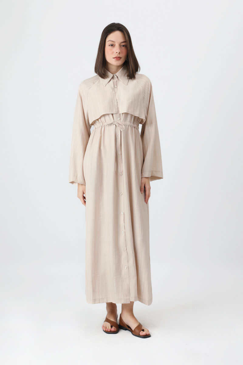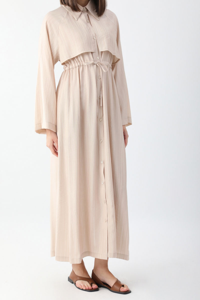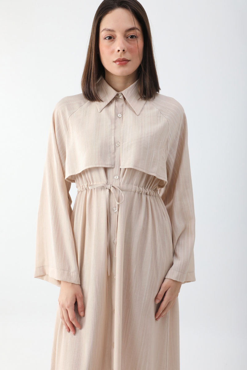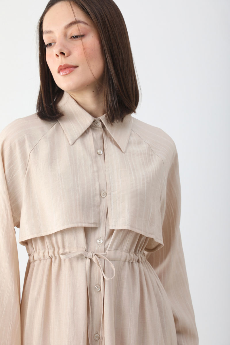 Rüzgarlıklı Gömlek Elbise Taş