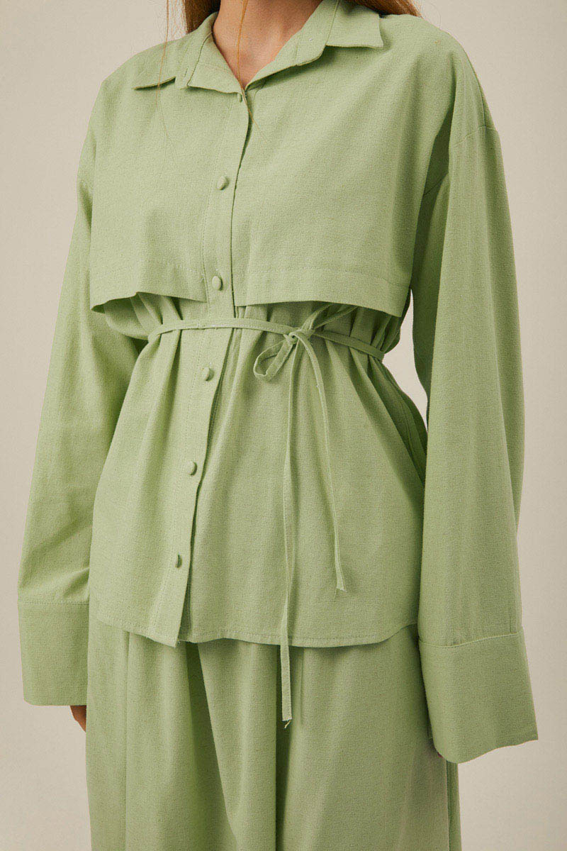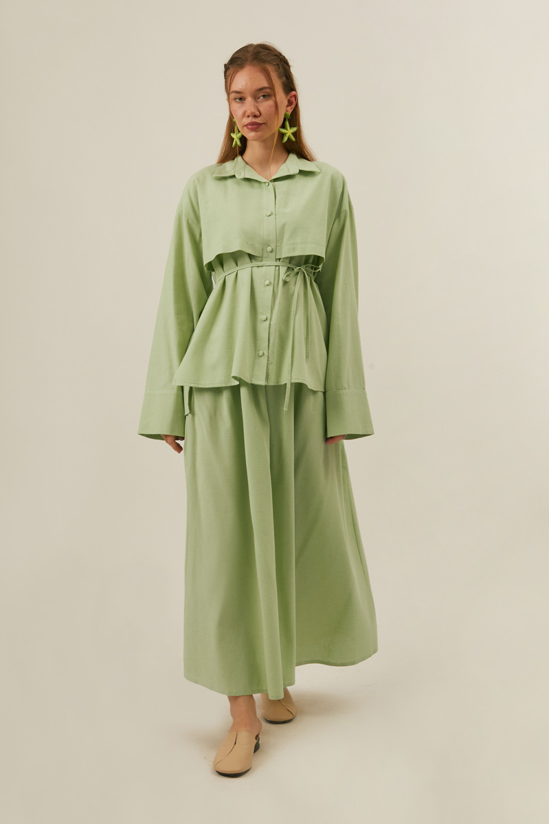 Rüzgarlıklı Keten Etek Takım Açık Yeşil