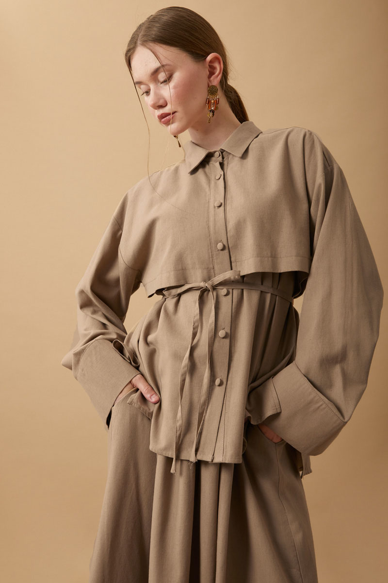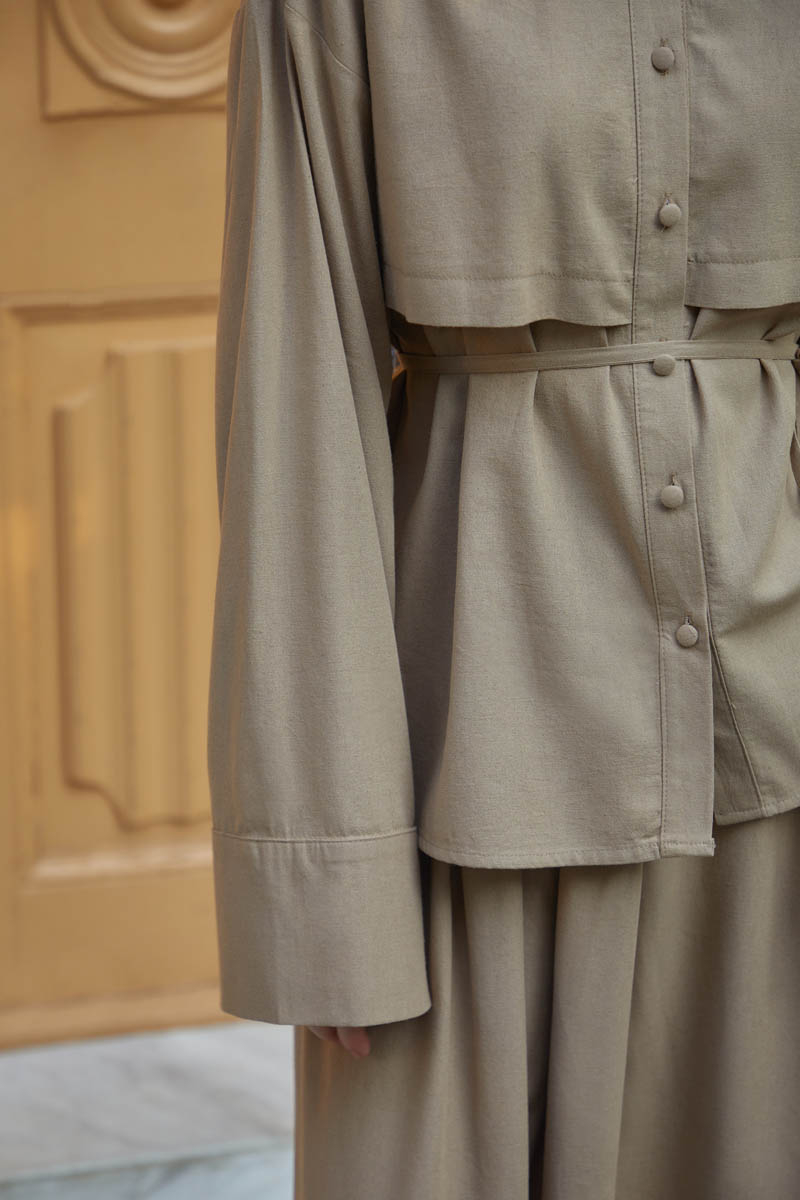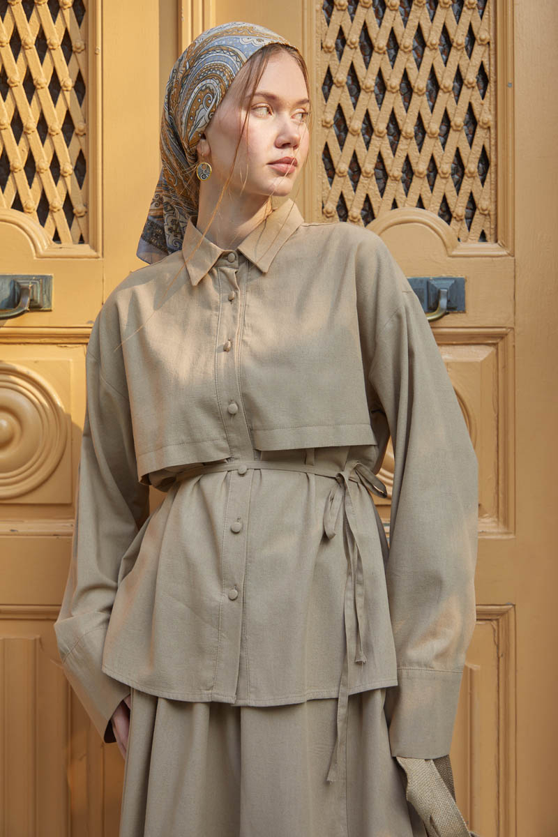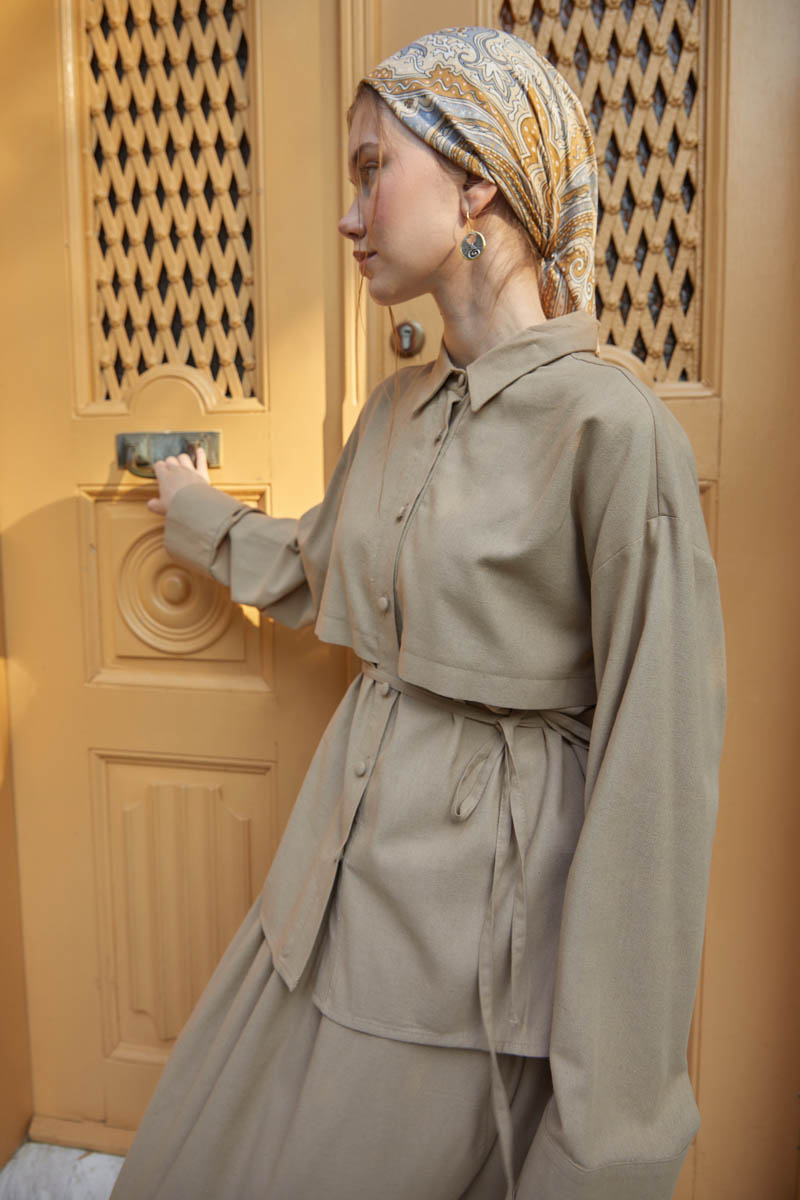 Rüzgarlıklı Keten Etek Takım Vizon